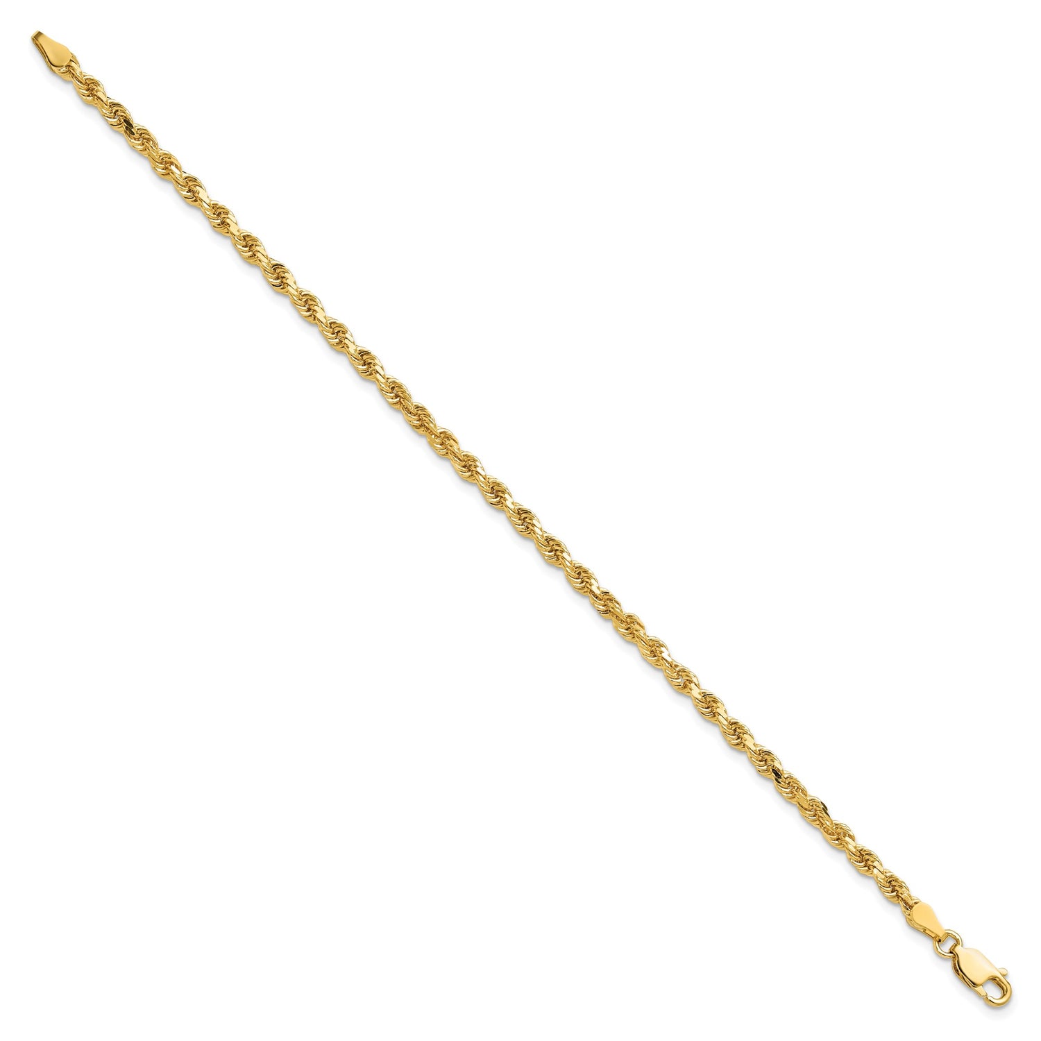 10K Yellow Gold Rope Chain Bracelet, 3.25 mm