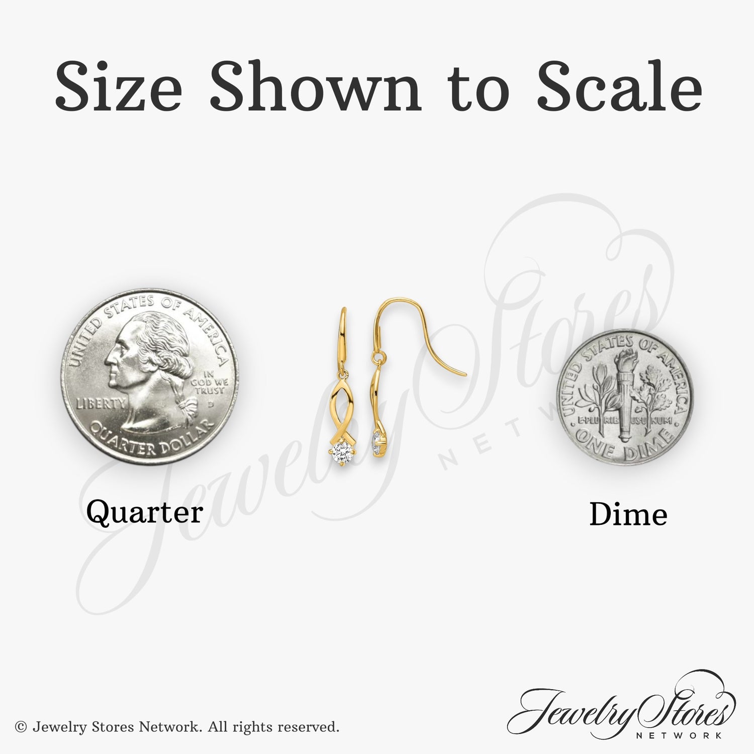 14k Yellow Gold Dangle Earrings with Cubic Zirconia, Open Marquise Ichthys Christian Design
