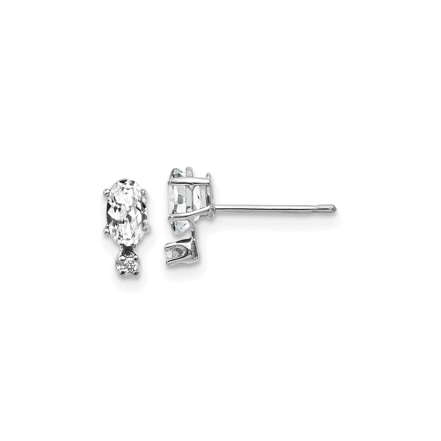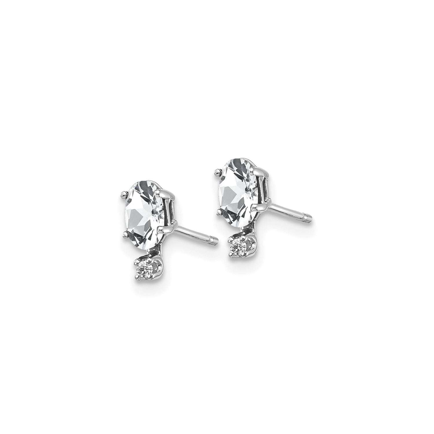 14k White Gold Stud Earrings with Oval Cut White Topaz and Diamond Accents