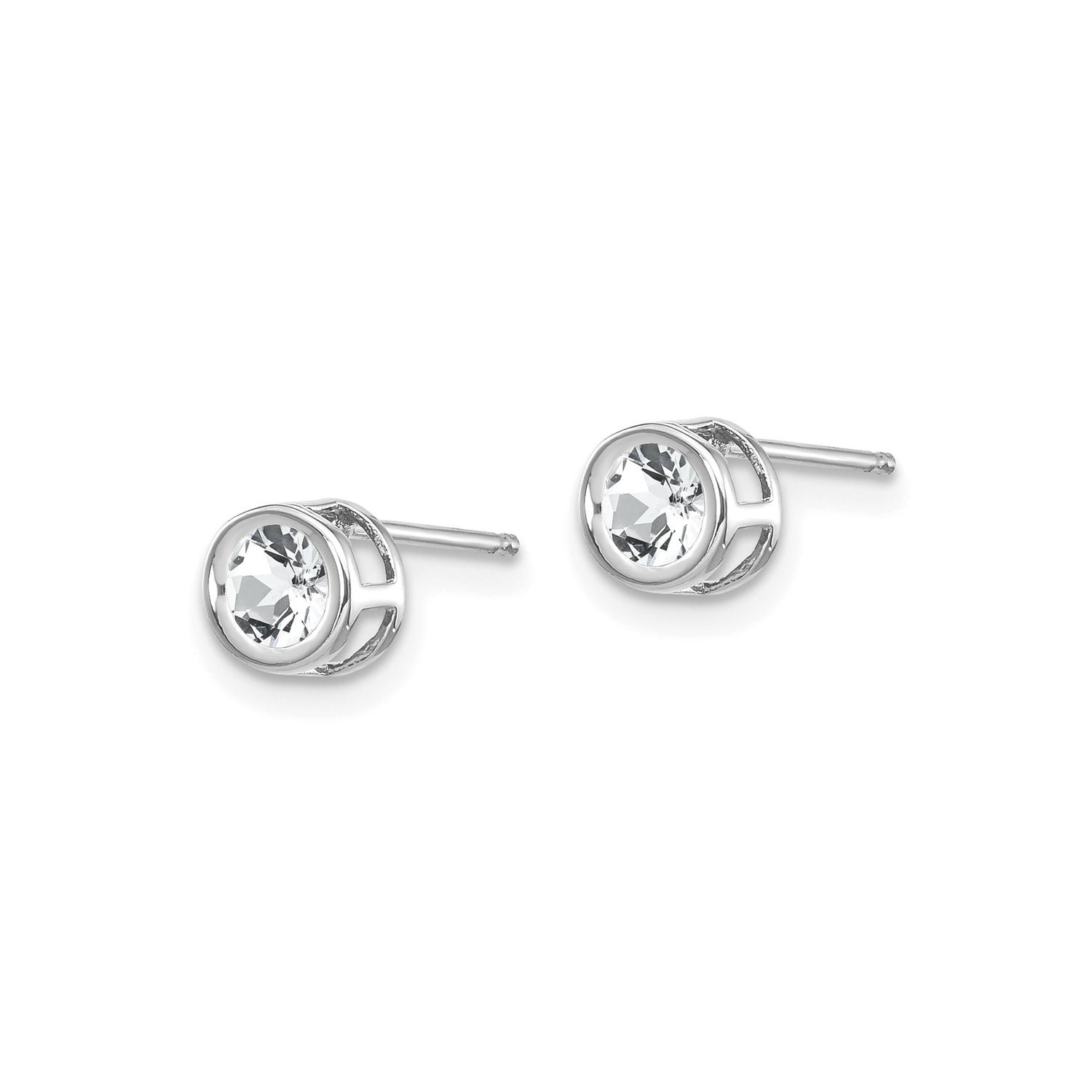 14k White Gold Stud Earrings with White Topaz, Bezel Set Round 4mm Minimalist Design