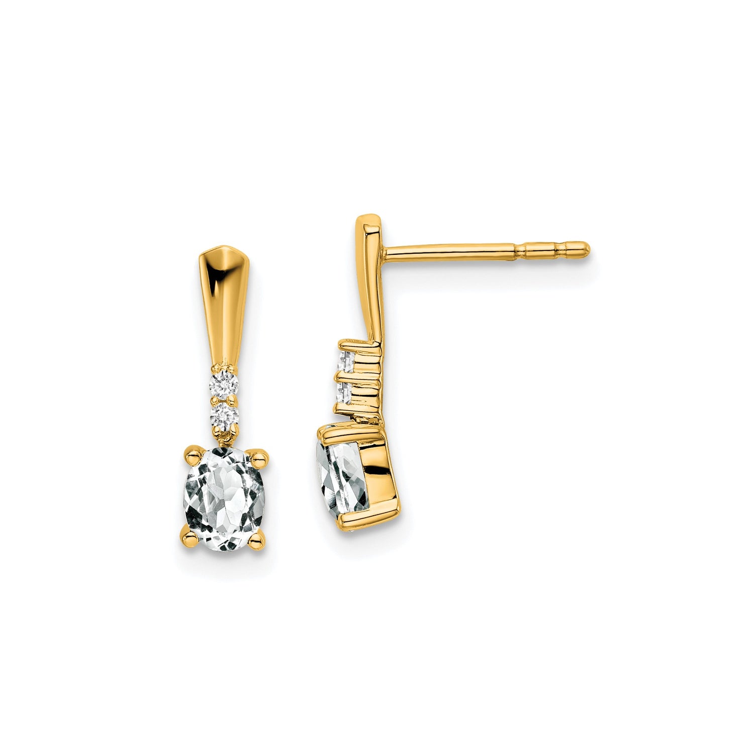 14k Yellow Gold Drop Earrings with Oval White Topaz and Diamond Accents