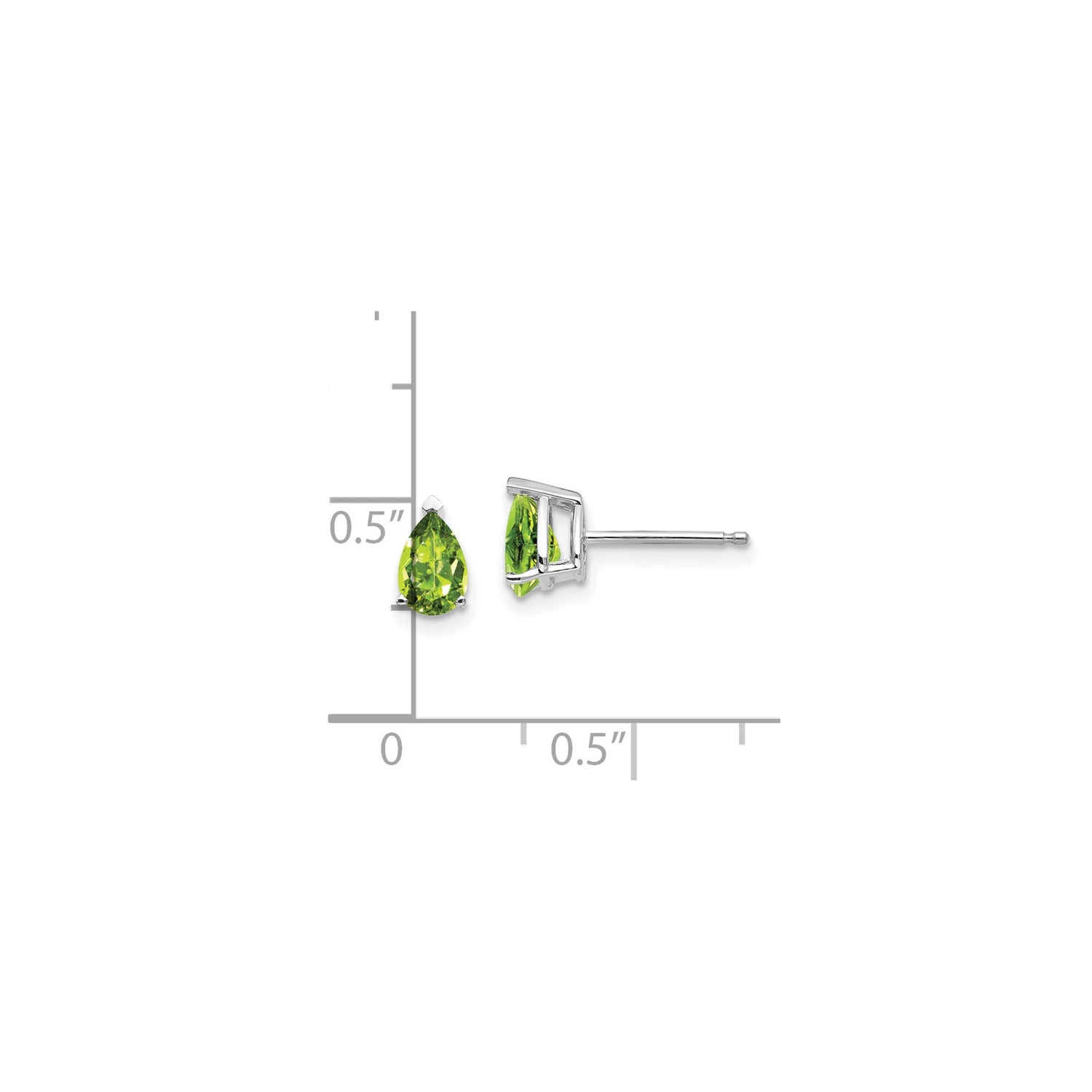 14k White Gold Peridot Stud Earrings, Pear Shape in Three Prong Setting, August Birthstone Jewelry