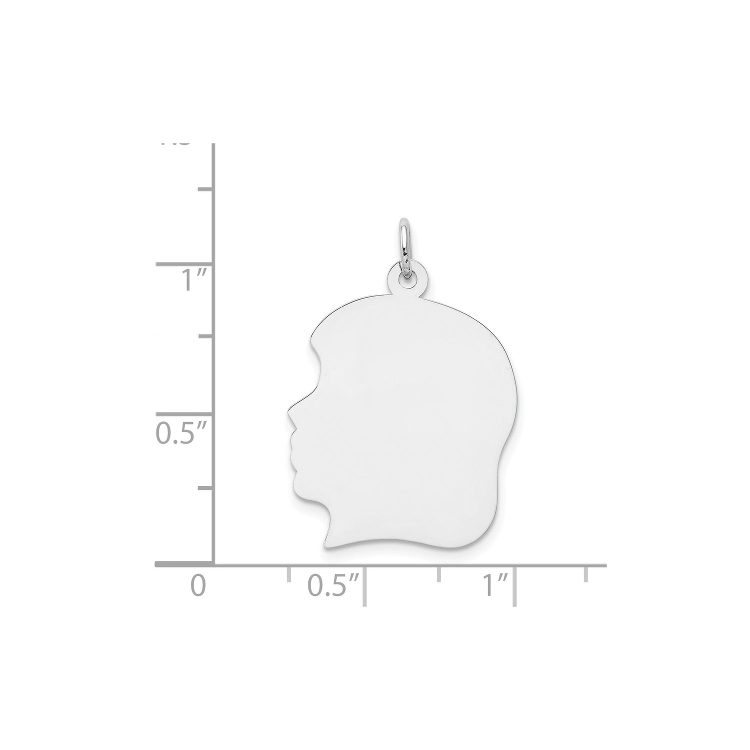 Discover the elegance and timeless beauty of our Plain Large Facing Left Engravable Girl Charm Pendant crafted in genuine 14k White Gold. This exquisite piece is a perfect blend of simplicity and sophistication, designed to capture hearts and elevate any jewelry collection.
