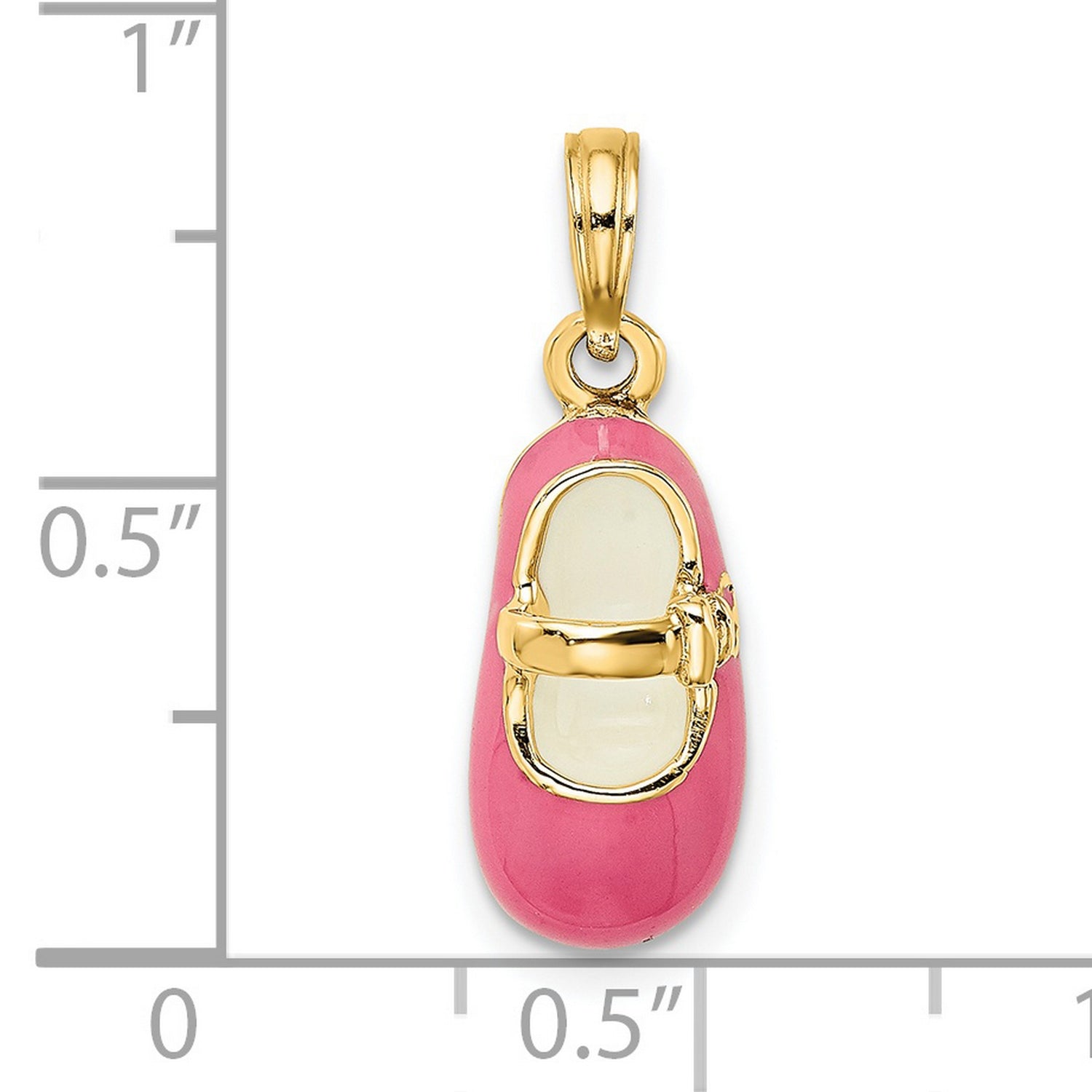 3-D Pink Enamel Baby Shoe Charm Pendant in Real 14k Yellow Gold