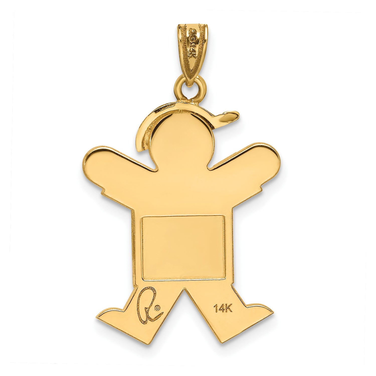 Order now and experience the perfect blend of elegance and personalization with our Solid Engravable Boy with Hat on Right Charm Pendant in Real 14k Yellow Gold.