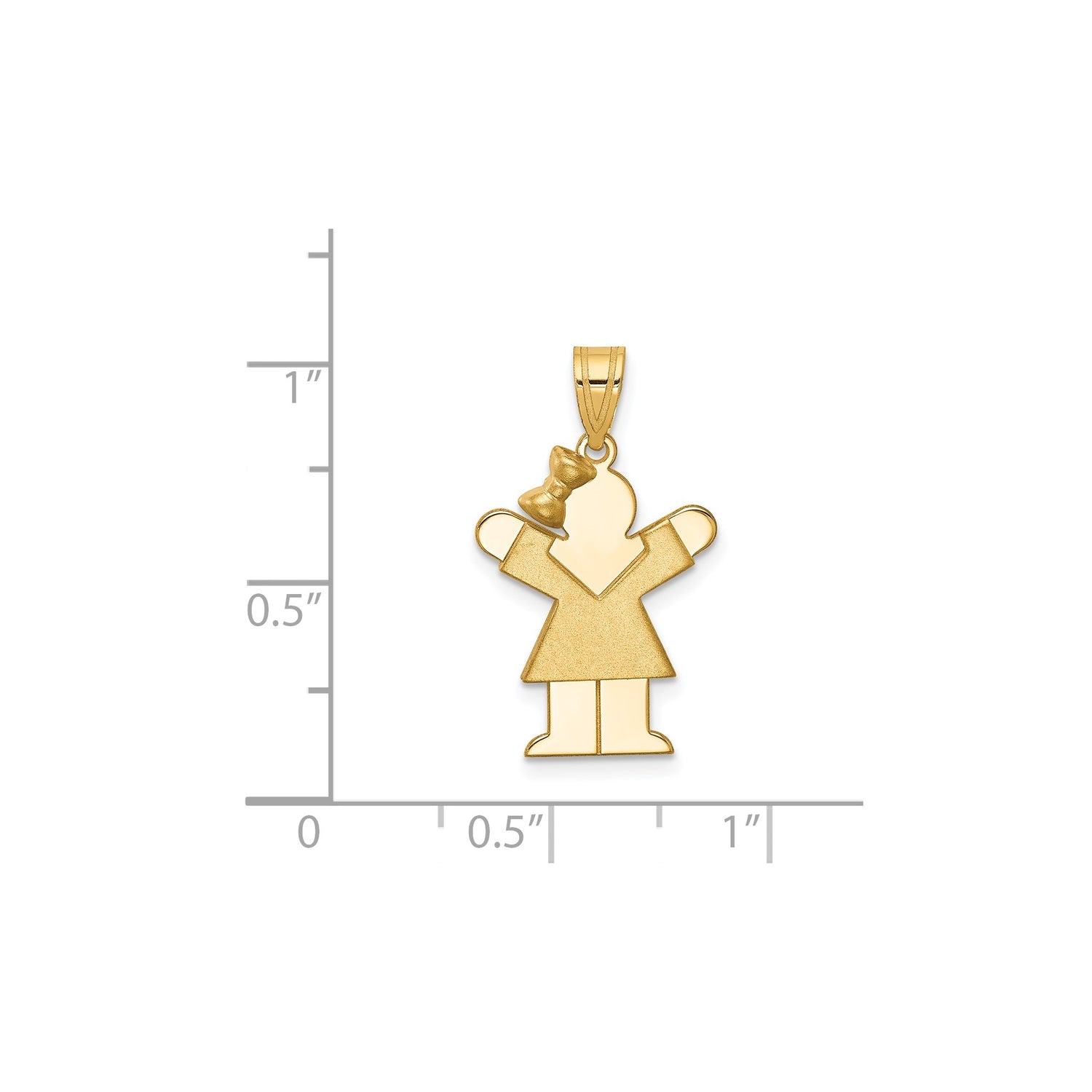 Enhance your jewelry collection with this Solid Engravable Girl with Bow on Left Charm Pendant in Real 14k Yellow Gold. Perfect for those seeking a blend of elegance, personalization, and quality. Order yours today and experience the allure of fine craftsmanship.