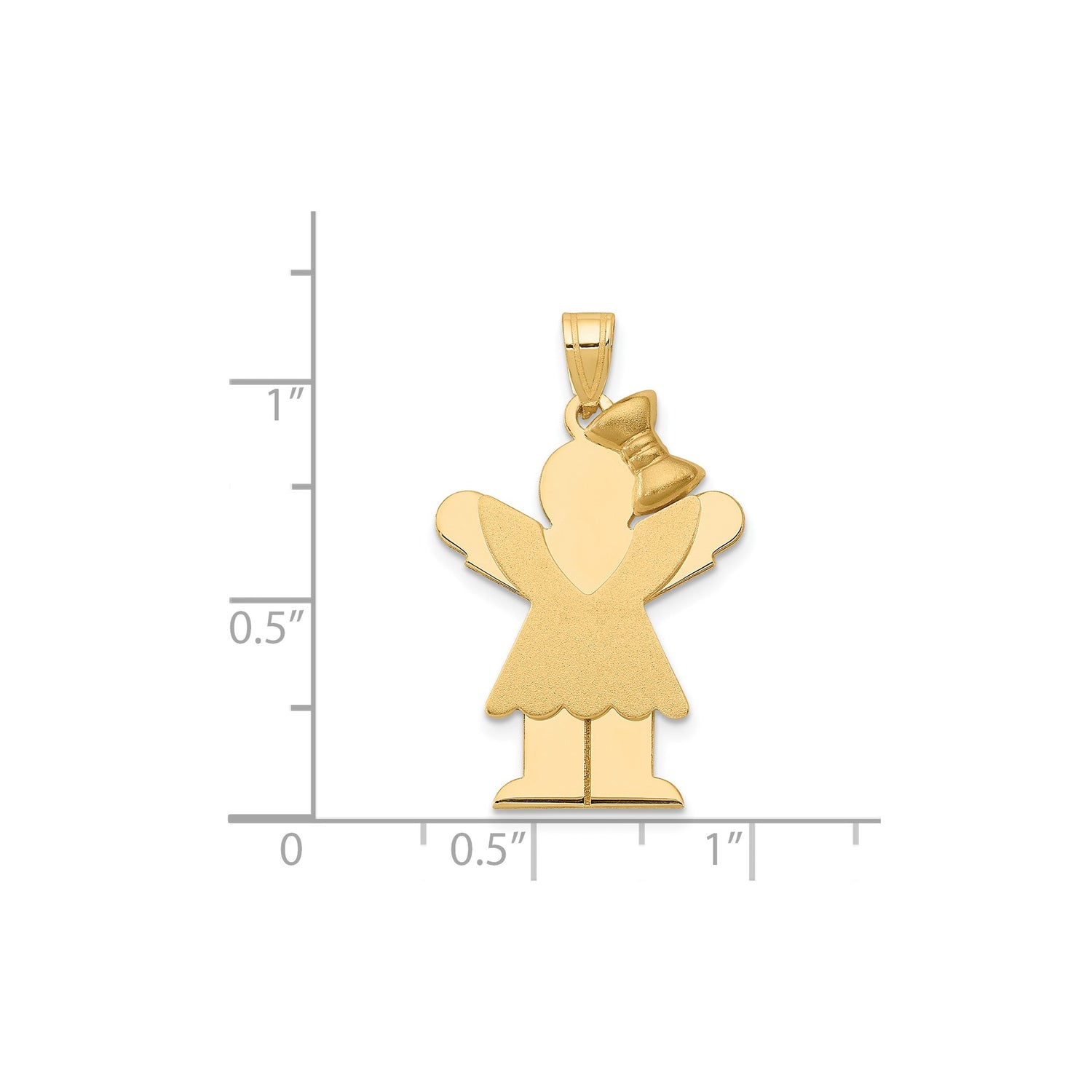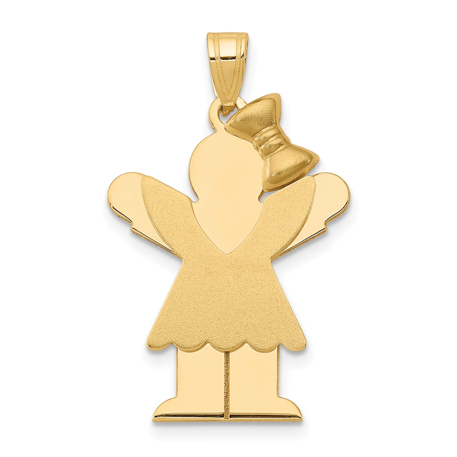 Elevate your jewelry collection with our exquisite Solid Engravable Girl with Bow on Right Charm Pendant crafted in genuine 14k Yellow Gold. This charming pendant is more than just a piece of jewelry; it's a personal statement and a timeless keepsake.