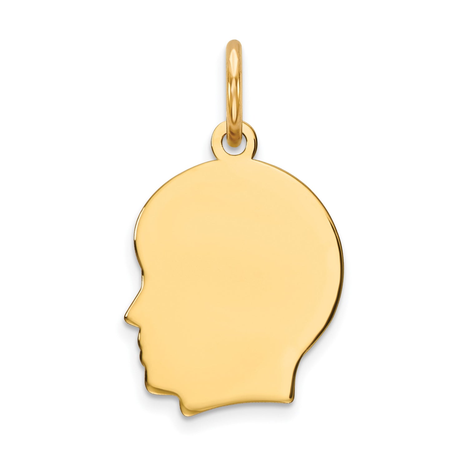 Plain Small .011 Gauge Facing Left Engravable Boy Head Charm Pendant in Real 14k Yellow Gold
