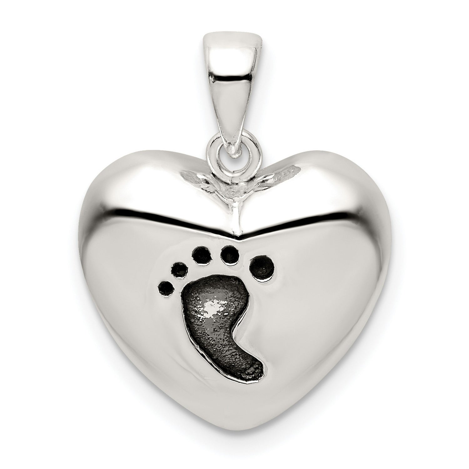 Sterling Silver Heart Pendant with Baby Footprint, Memorial Jewelry for Women
