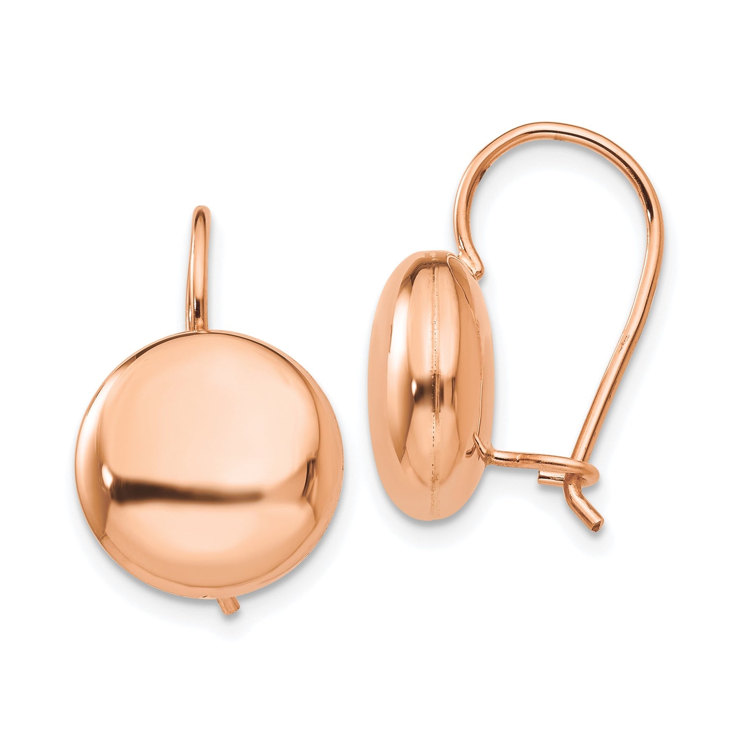 14k Rose Gold Leverback Earrings, Domed Drop Design, Polished Button Style, Lightweight Jewelry