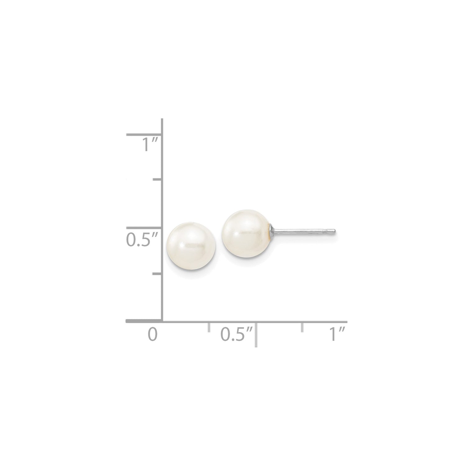 14k White Gold Pearl Stud Earrings with Round Cultured White Pearls, Classic Minimalist Style