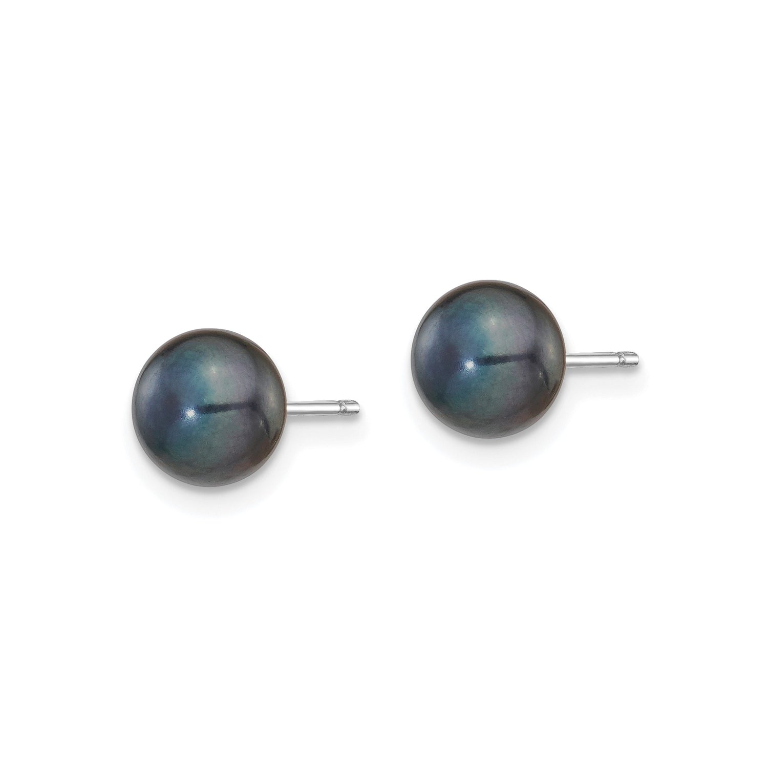 14k White Gold Stud Earrings with Black Cultured Freshwater Pearls, Minimalist Design for Women
