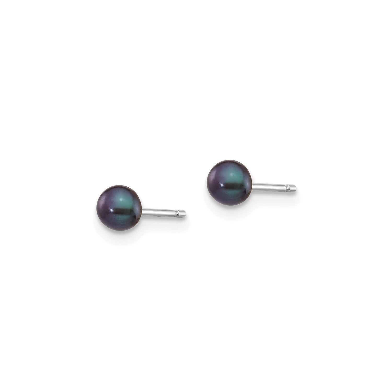 14k White Gold Stud Earrings with Black Cultured Round Pearls, Iridescent Green and Purple Hues