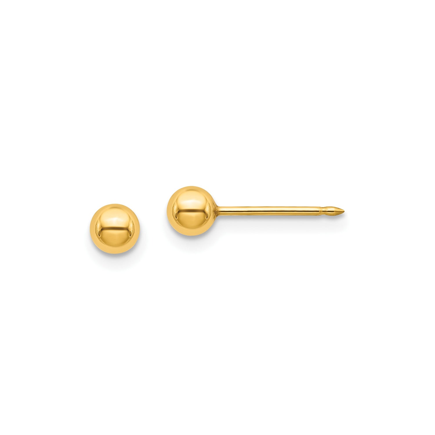 14k Yellow Gold Ball Stud Earrings, Classic Minimalist Round Design for Women or Unisex Wear