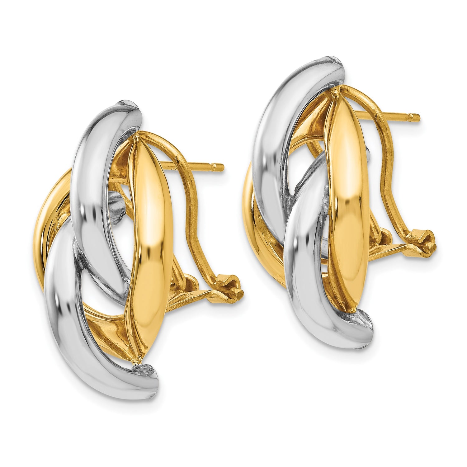 14k Yellow Gold Hoop Earrings with Interlocking Two-Tone Links and Sculptural Loop Design