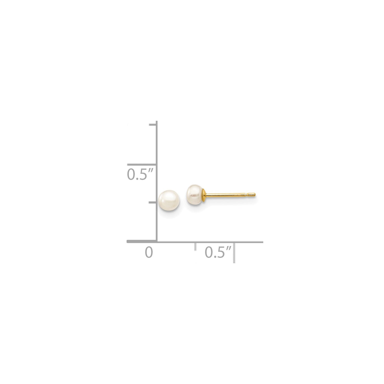 14K Yellow Gold Pearl Stud Earrings Minimalist Round Pearl
