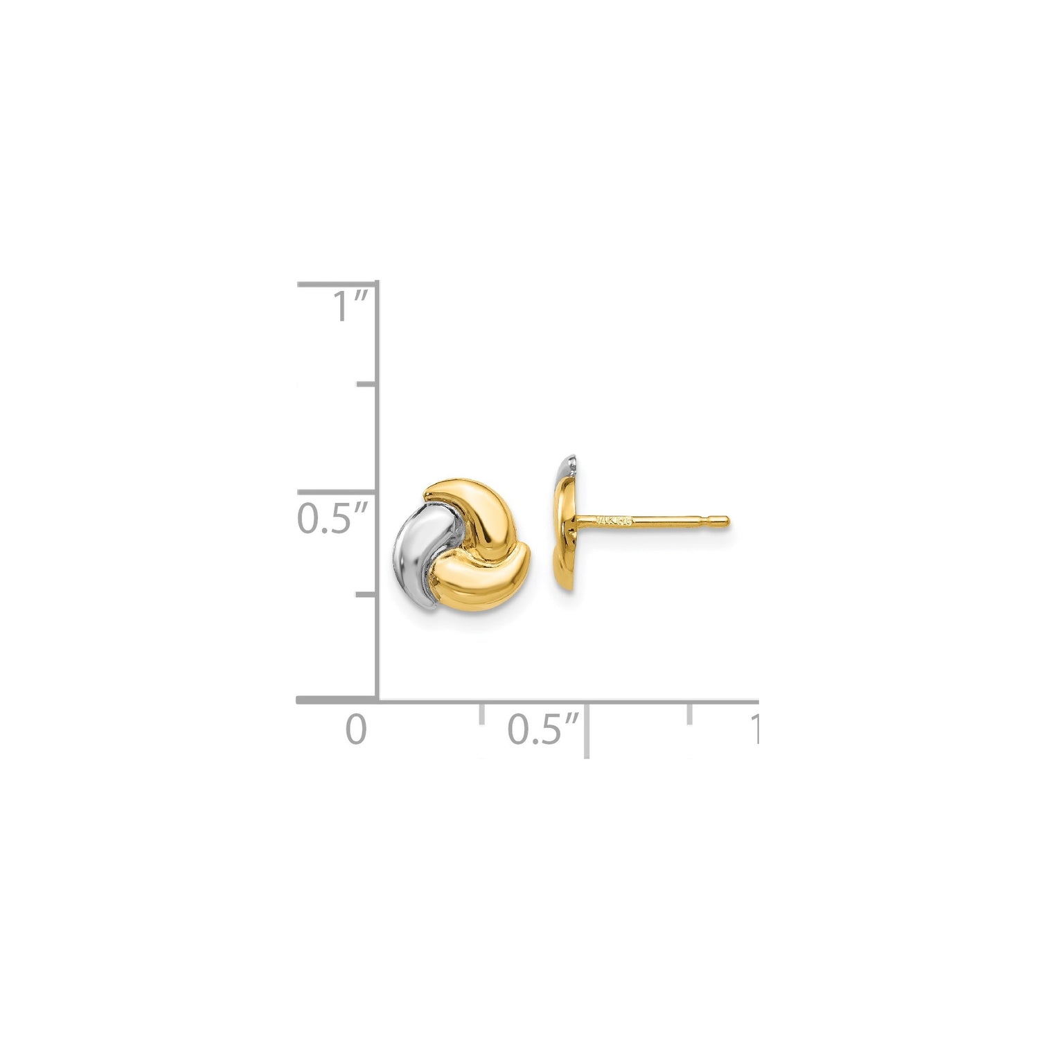 14k Yellow Gold Stud Earrings, Two-Tone Swirl Design with Rhodium Accents, Abstract Minimalist Style