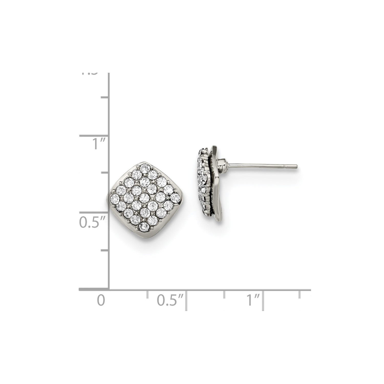 Stainless Steel Square Stud Earrings with Clear Crystals in Pavé Setting