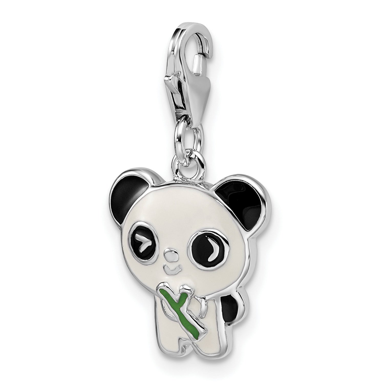 Sterling Silver Panda Charm Pendant, Enamel Animal Design, Kawaii Nature-Inspired Jewelry