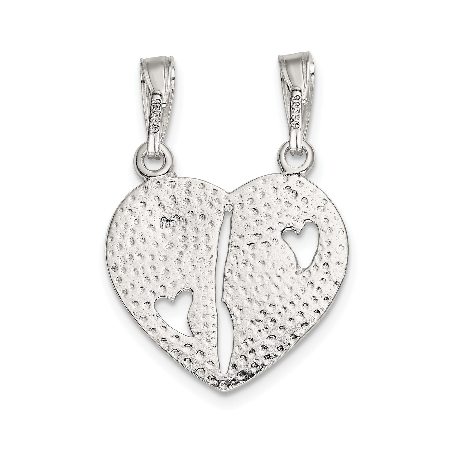 Sterling Silver Split Heart Pendant with Cutout Hearts, Breakable Friendship Charm for BFF or Unisex