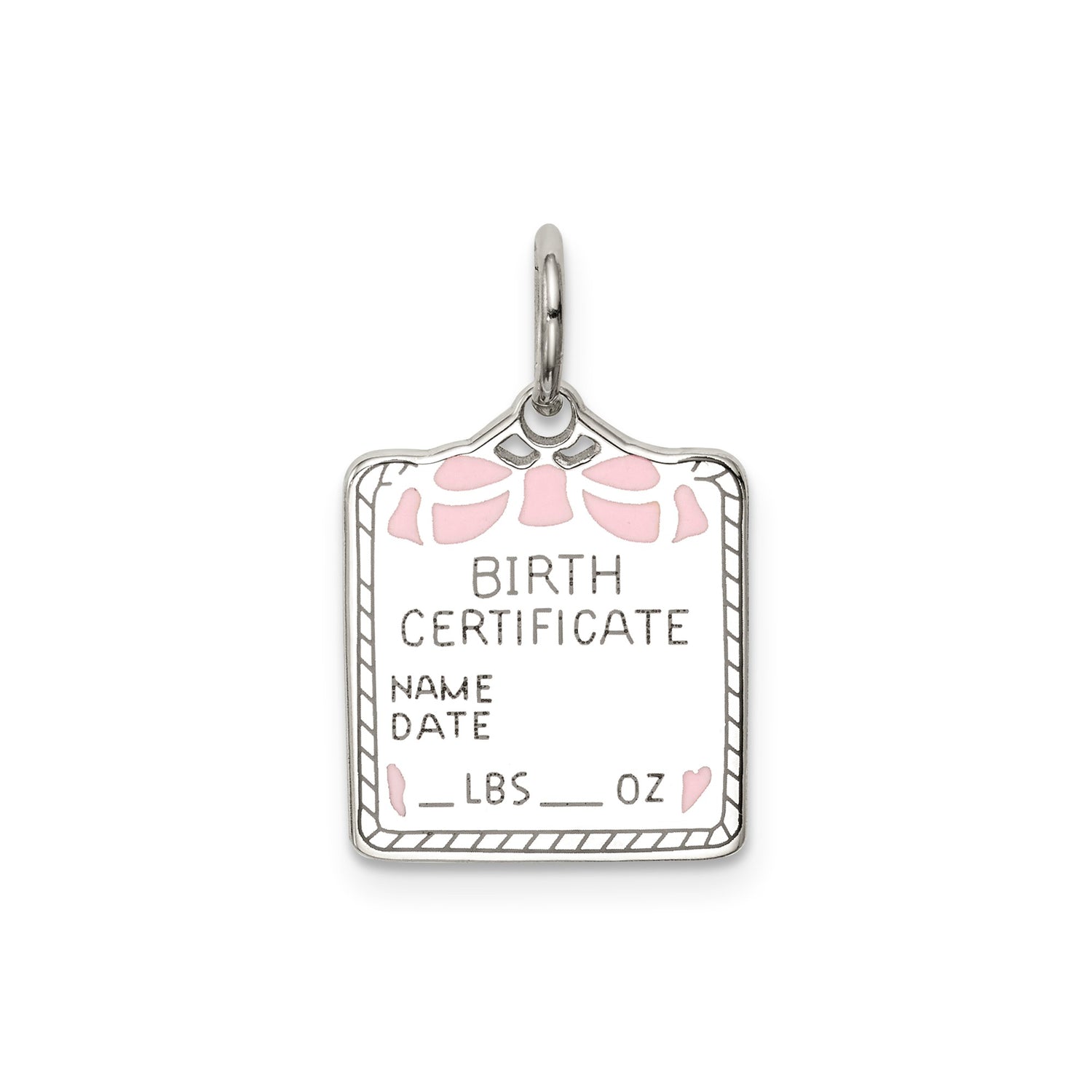 Celebrate the birth of your little one with our exquisite Pink Birth Certificate Polished Charm Pendant, meticulously crafted from Real 925 Sterling Silver. This charming pendant is not just a piece of jewelry; it's a keepsake that captures a moment in time.