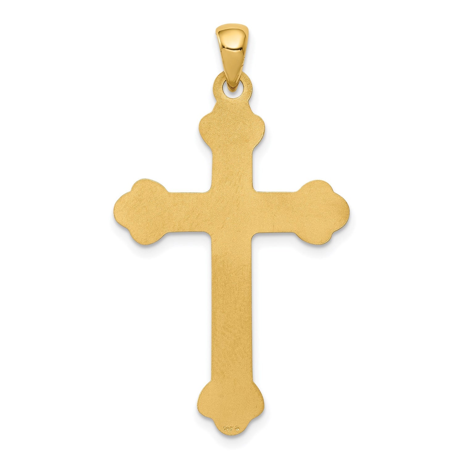 Engravable Fleur De Lis Cross Charm Pendant in Real 14k Yellow Gold