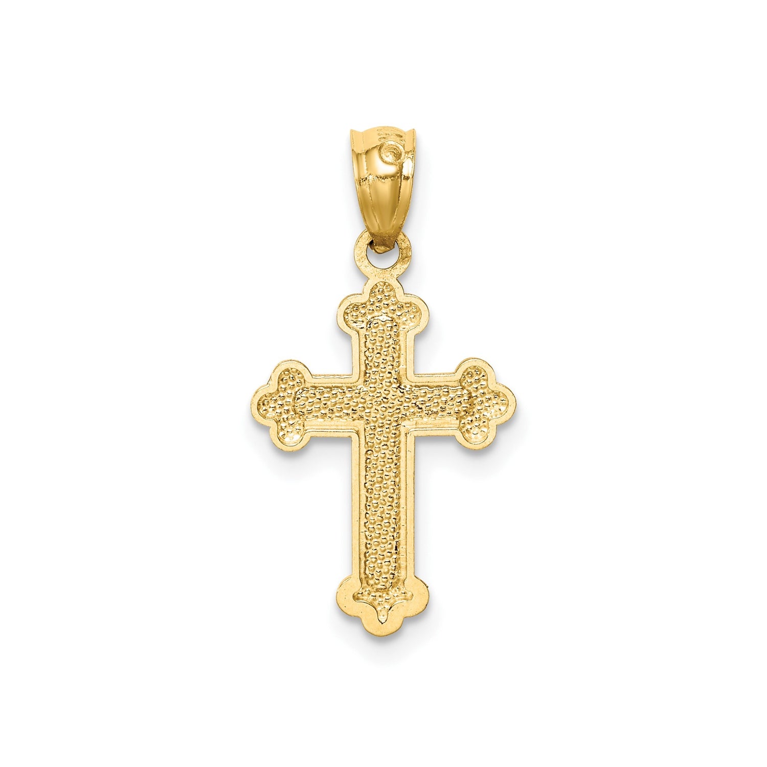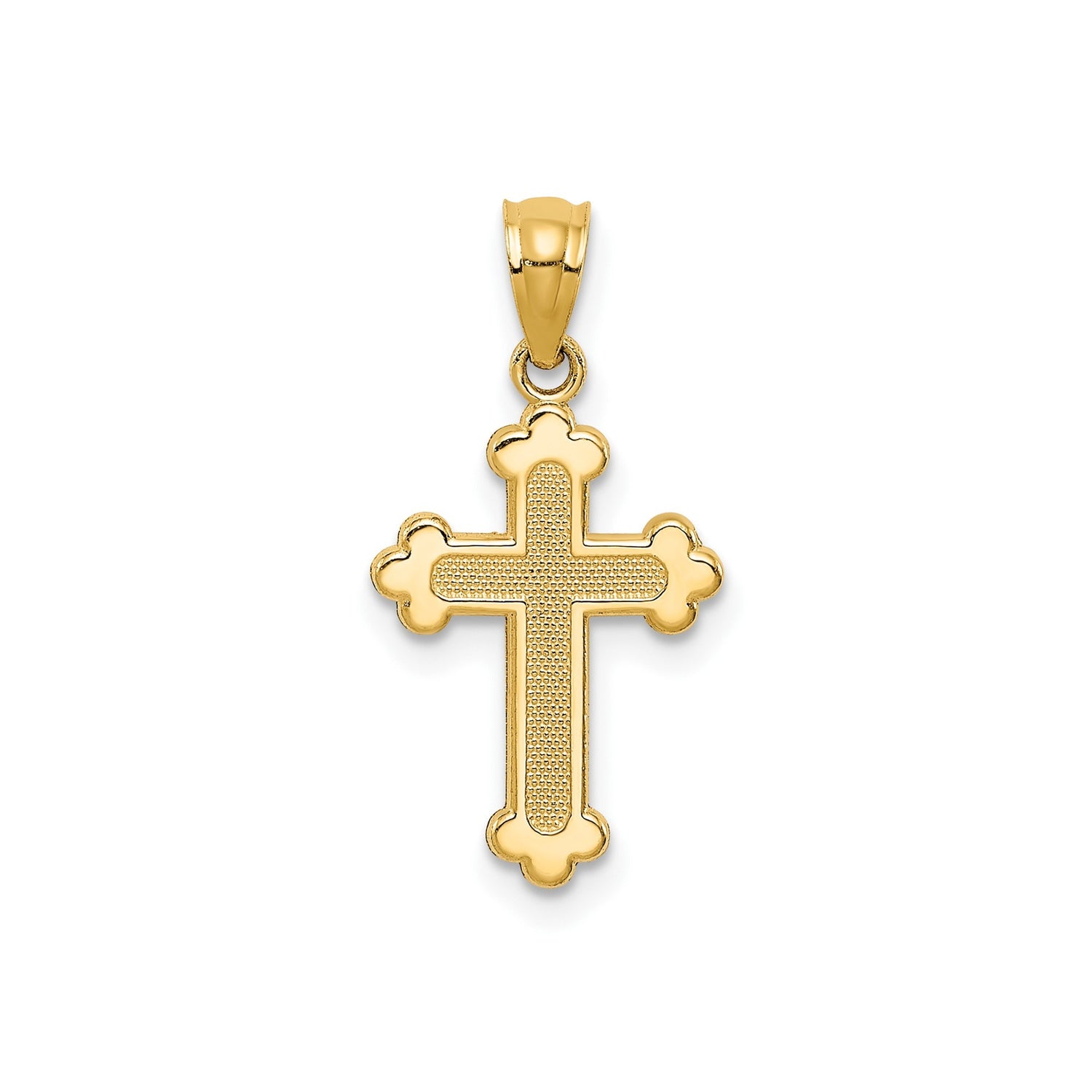 14k Yellow Gold Fleur-de-Lis Cross Pendant with Textured Inlay, Religious Charm