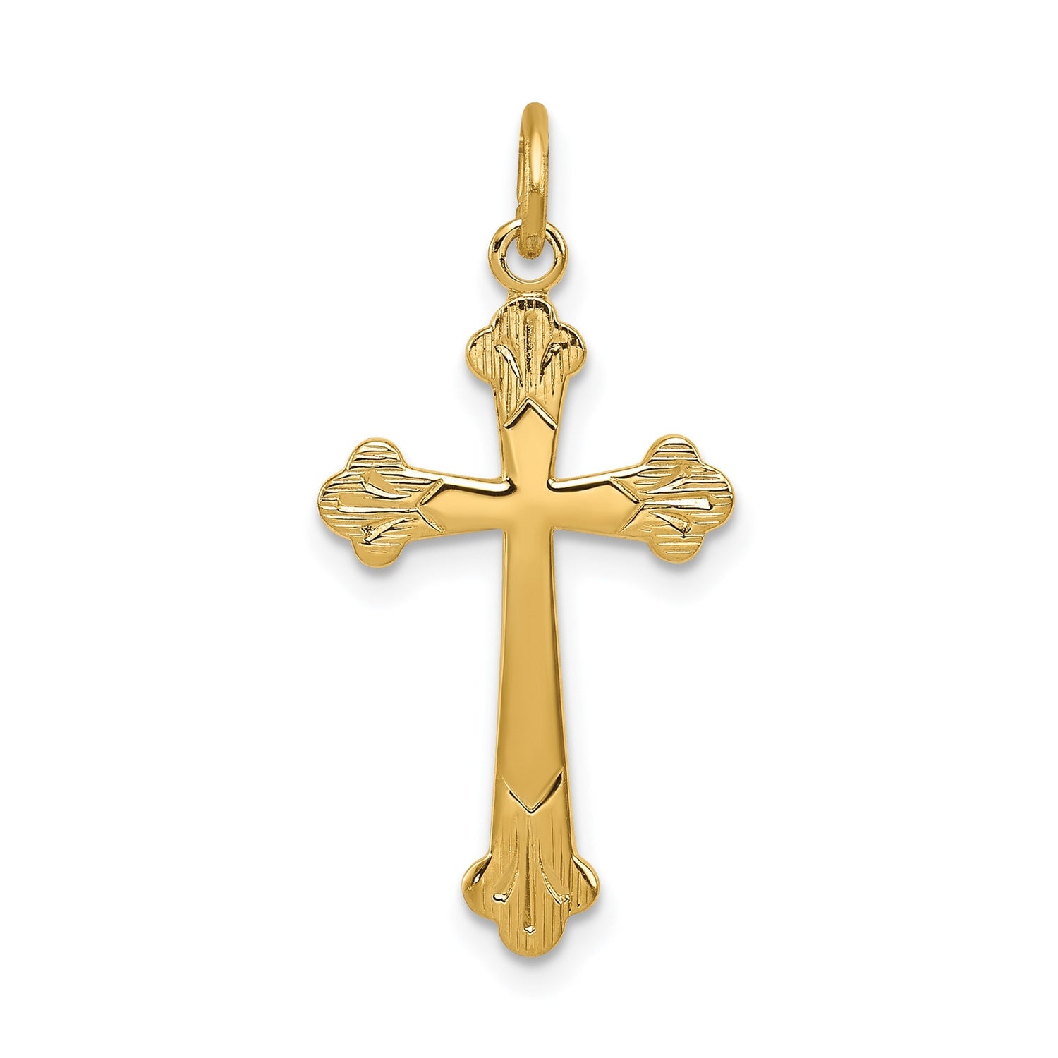 Sterling Silver Budded Cross Pendant with Carved Detail, Religious Charm Design