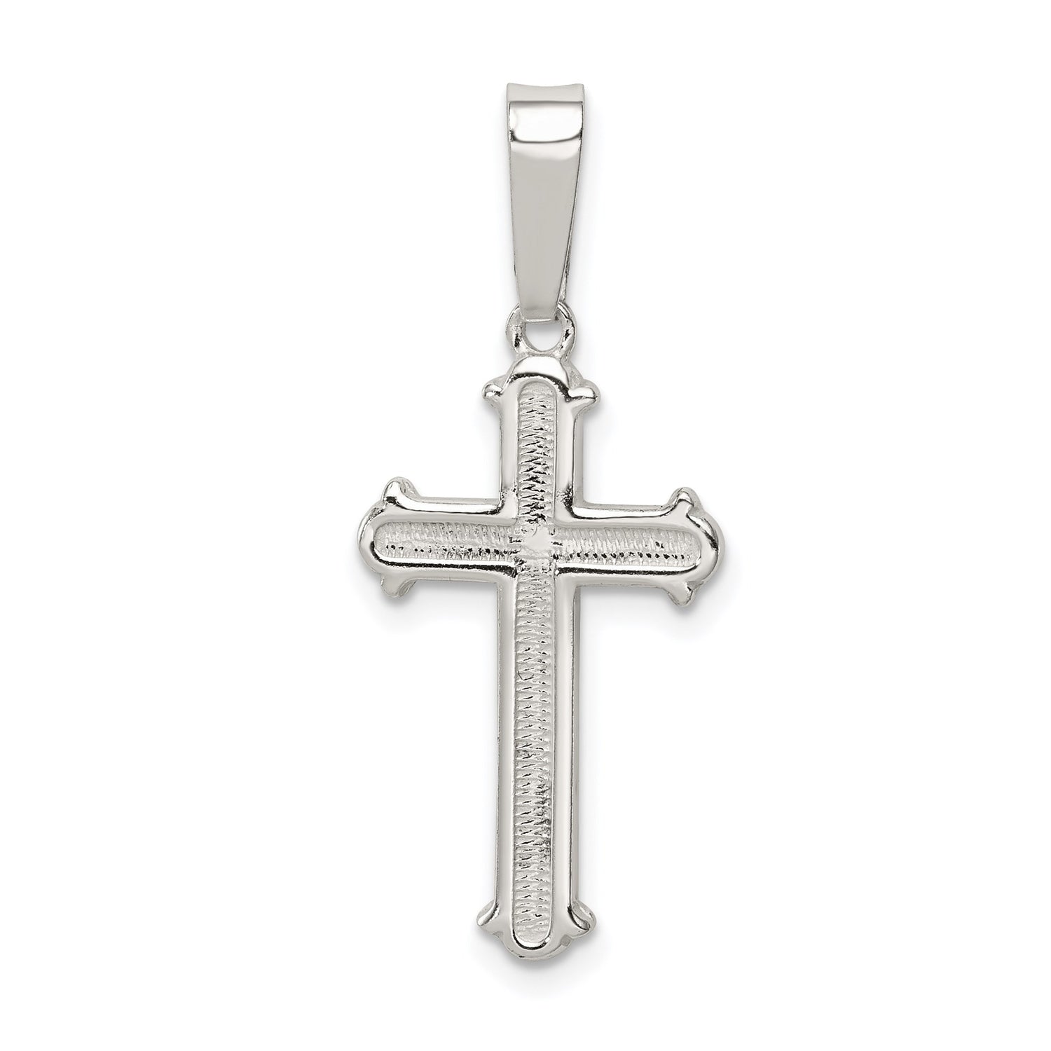 Sterling Silver Cross Pendant with Smooth High-Polish Finish and Textured Symmetrical Design