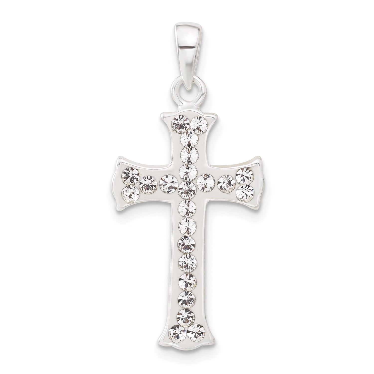 Sterling Silver Cross Pendant with White Crystal, Modern Religious Faith Symbol for Men and Women