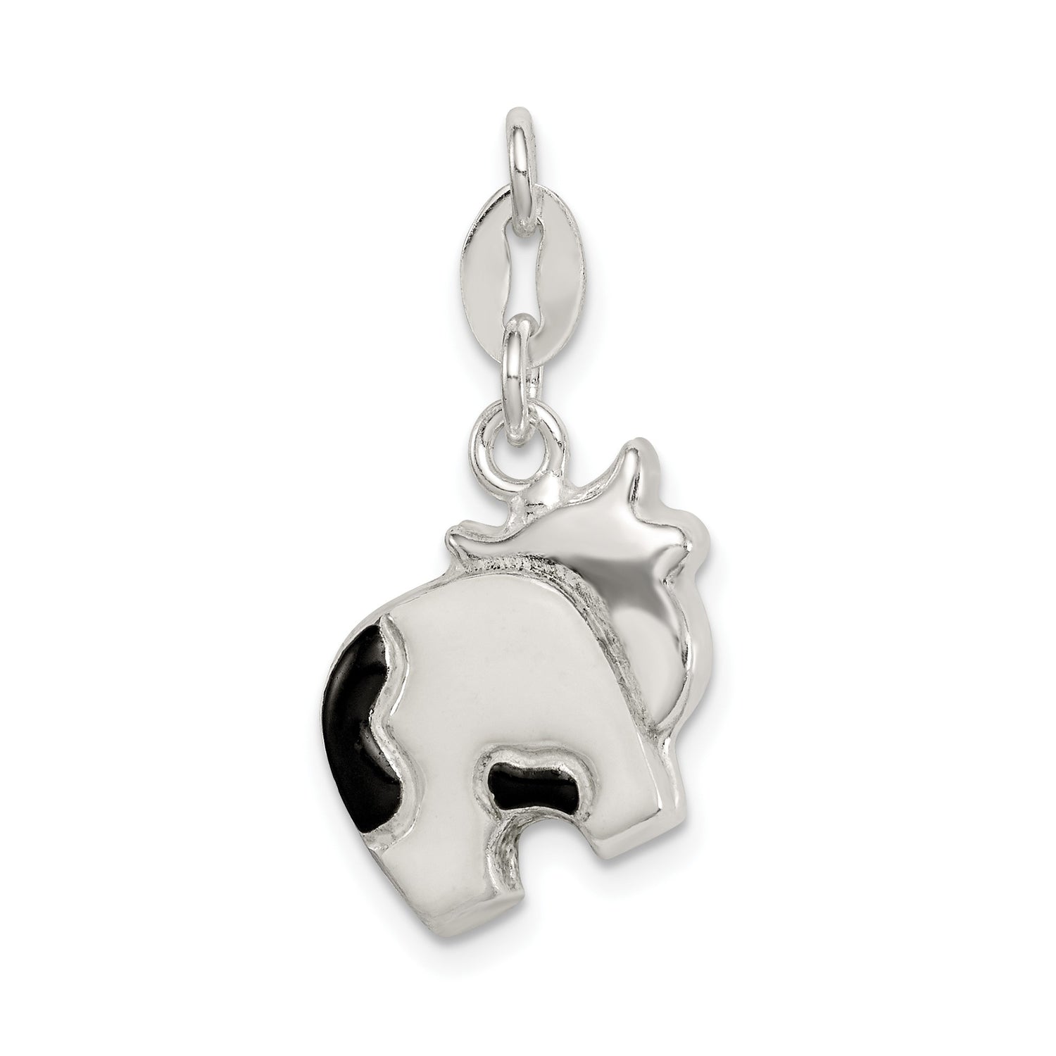 Experience the beauty and craftsmanship of our Enameled Cow Charm Pendant in Real 925 Sterling Silver. Enhance your jewelry collection today with this captivating piece.