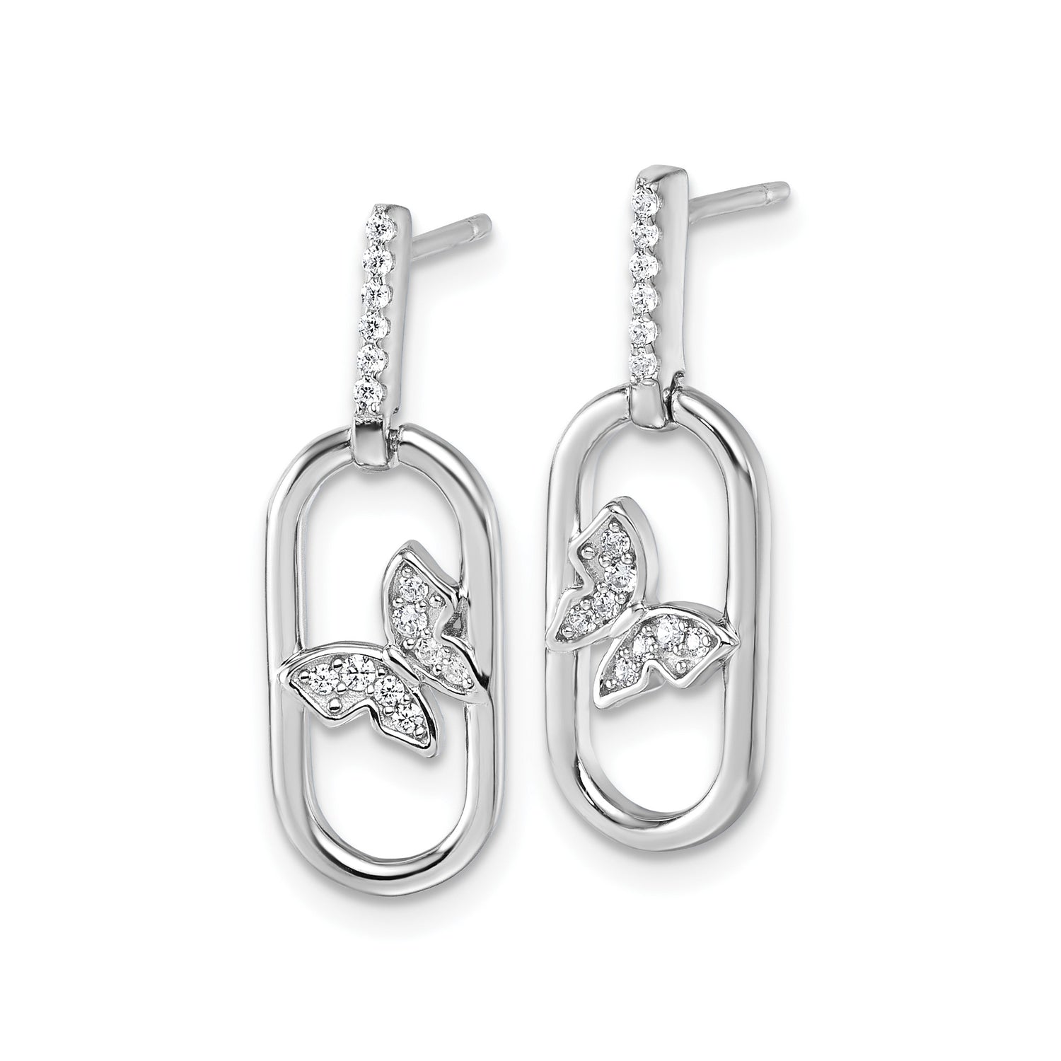 Sterling Silver Butterfly Dangle Earrings with Cubic Zirconia, Oval Drop Design