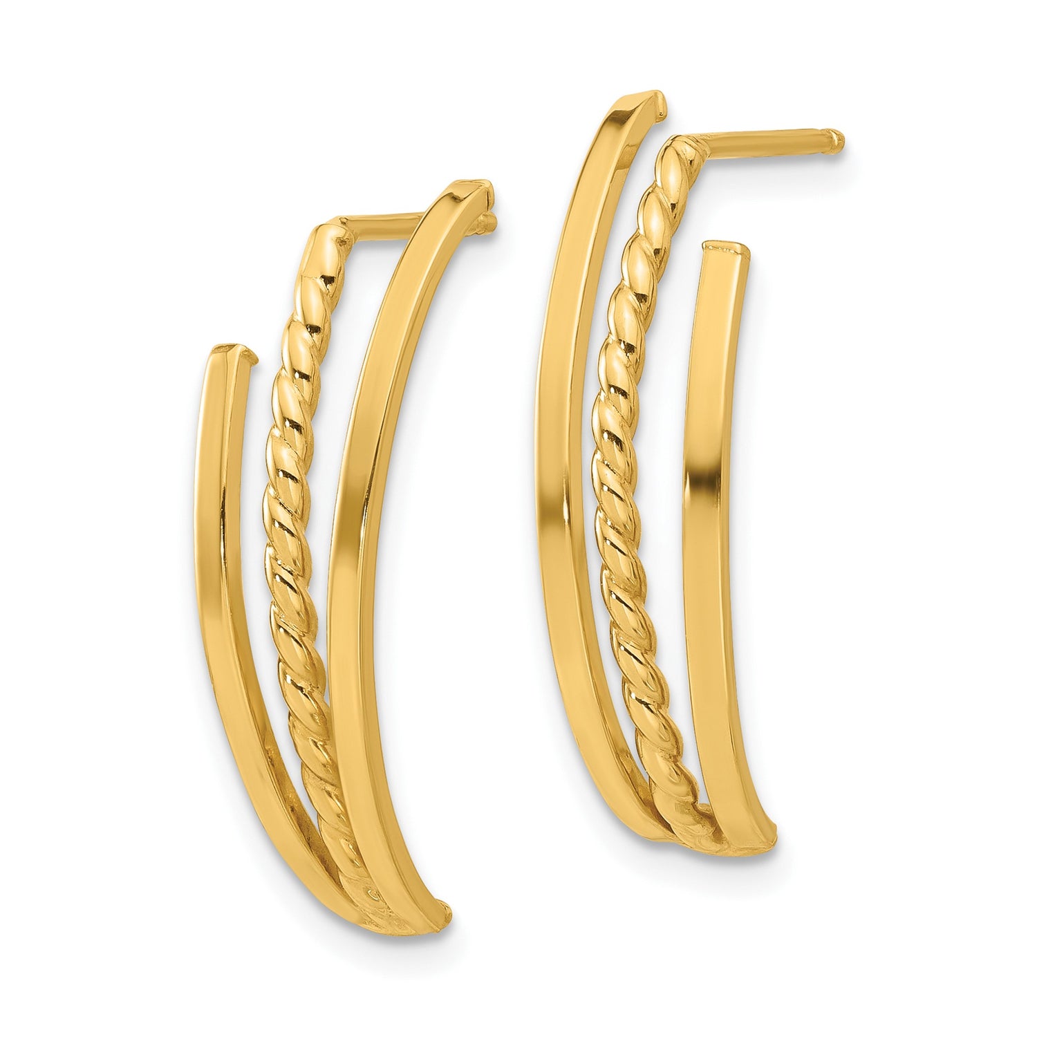 14k Yellow Gold Triple Bar Hoop Earrings with Twisted Rope Design and Polished Finish