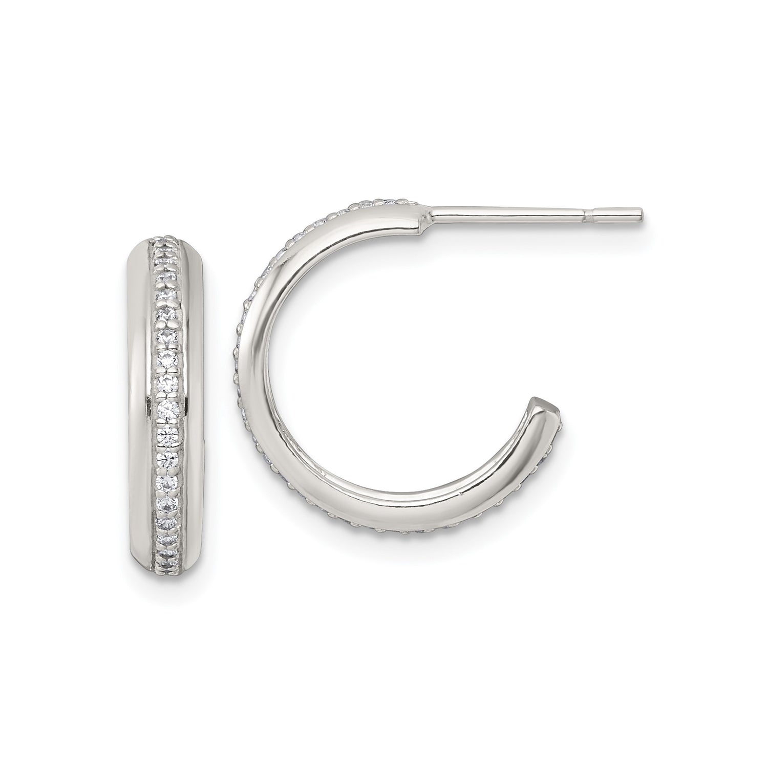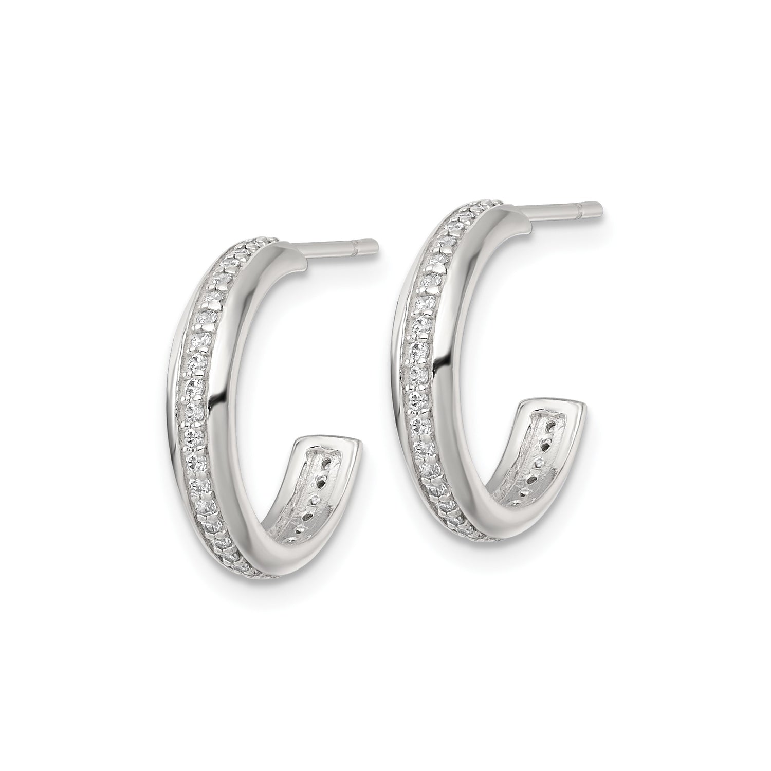 Sterling Silver Hoop Earrings with Cubic Zirconia Accents, Polished Minimalist Design