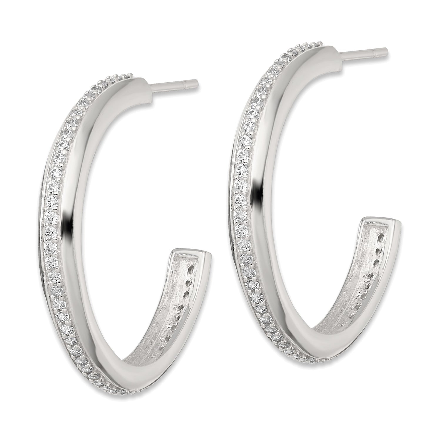 Crafted With The Radiance Of Sterling Silver And Set With Subtle Cubic Zirconia Along The Curve, These Sparkling Hoop Earrings Catch The Light Without Overpowering Your Style. Designed For Versatility, These Fashion Earrings Are Ideal For Those Seeking Fine Jewelry Hoops That Transition Easily From Daytime Simplicity To Evening Charm. Their Lightweight Feel And Secure Design Ensure Comfortable All-Day Wear Without Compromising On Beauty.