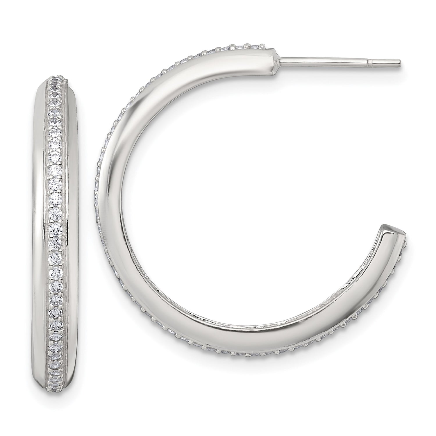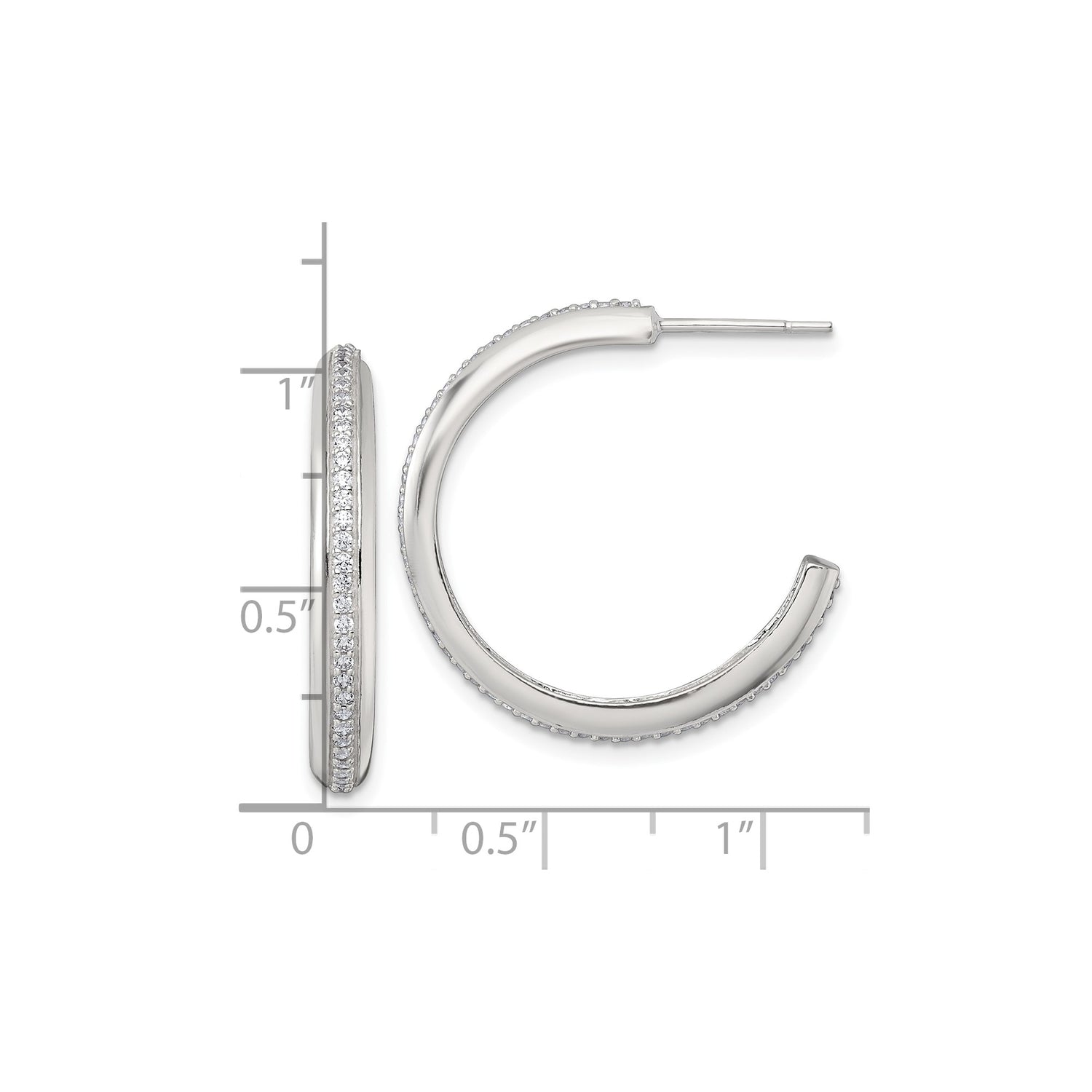 Sterling Silver Hoop Earrings with Cubic Zirconia, Sleek Polished Minimalist Design