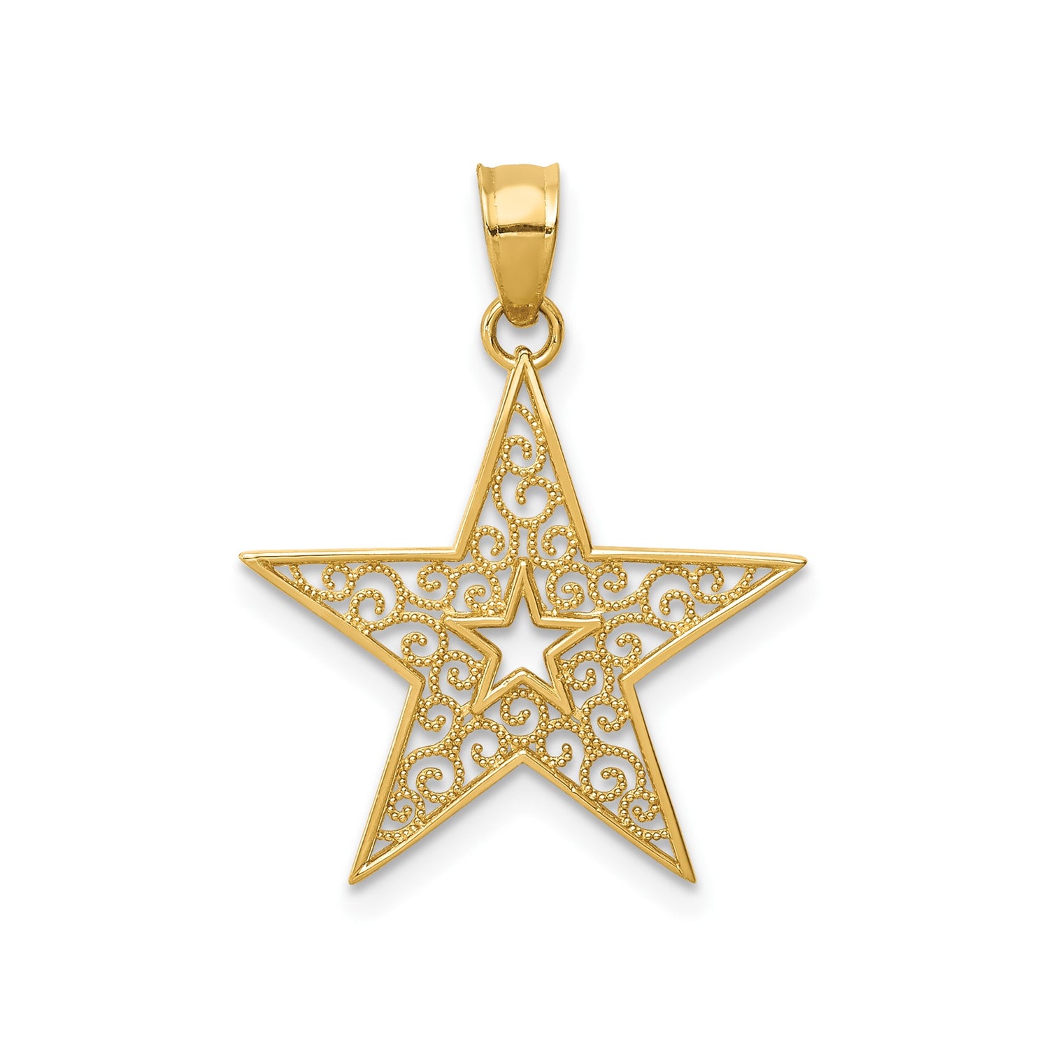 14k Yellow Gold Star Pendant with Openwork Filigree Design, Celestial Charm for Women