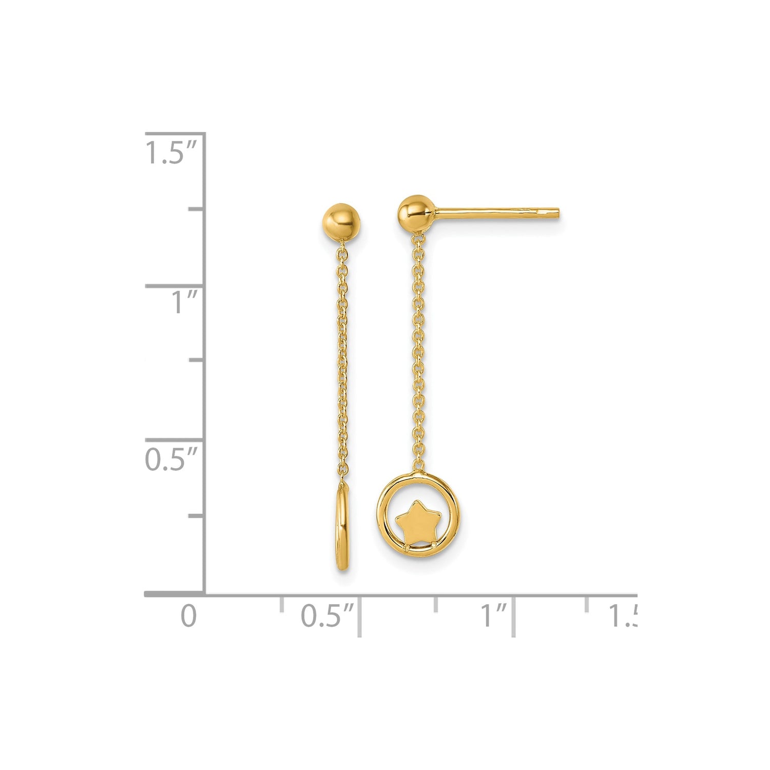 14k Yellow Gold Dangle Earrings with Chain Drop and Polished Star in Circle Design