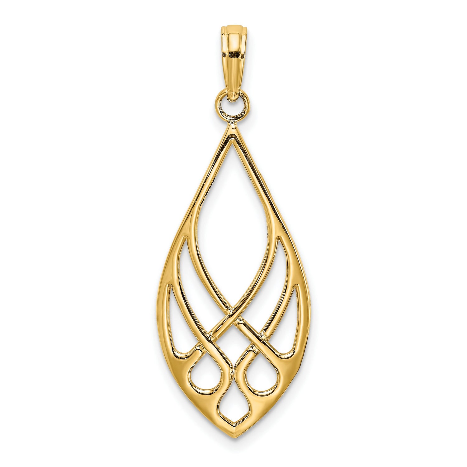 14k Yellow Gold Teardrop Pendant with Abstract Openwork Filigree Design
