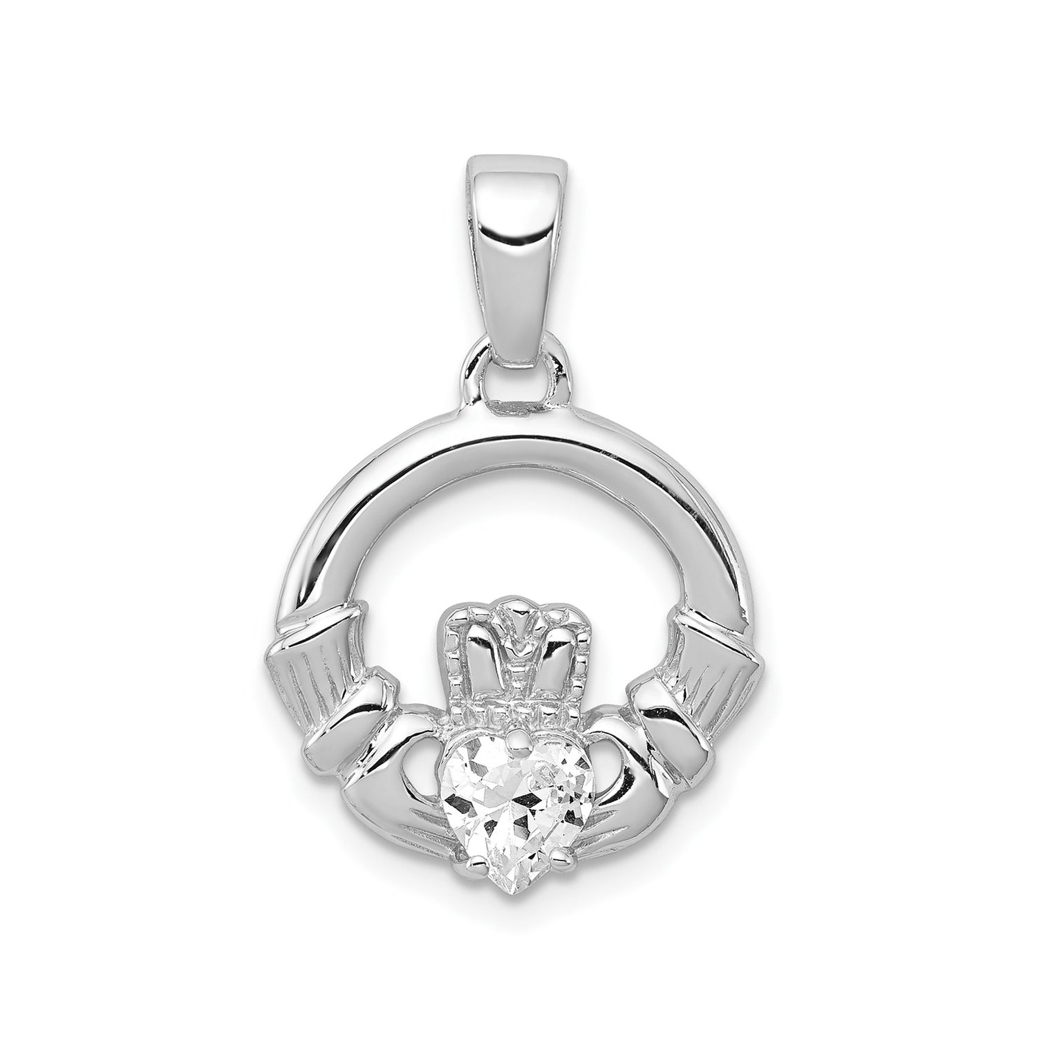 Sterling Silver Claddagh Pendant with Cubic Zirconia, Irish Celtic Heart Crown Hands Design