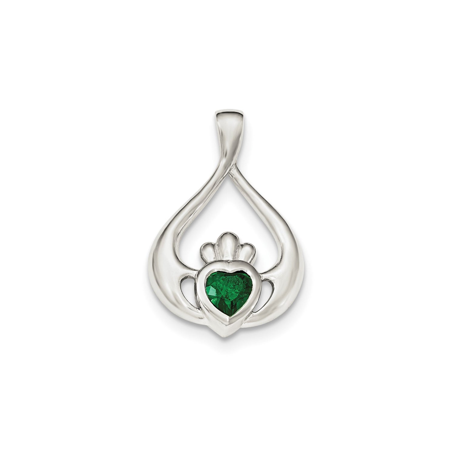 Sterling Silver Claddagh Pendant with Green Cubic Zirconia Heart, Irish Love and Loyalty Symbol