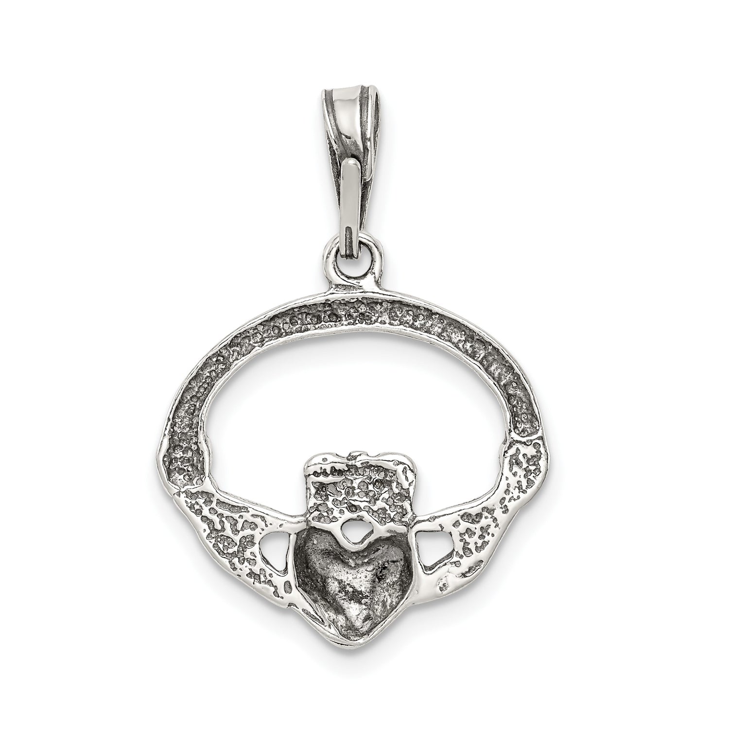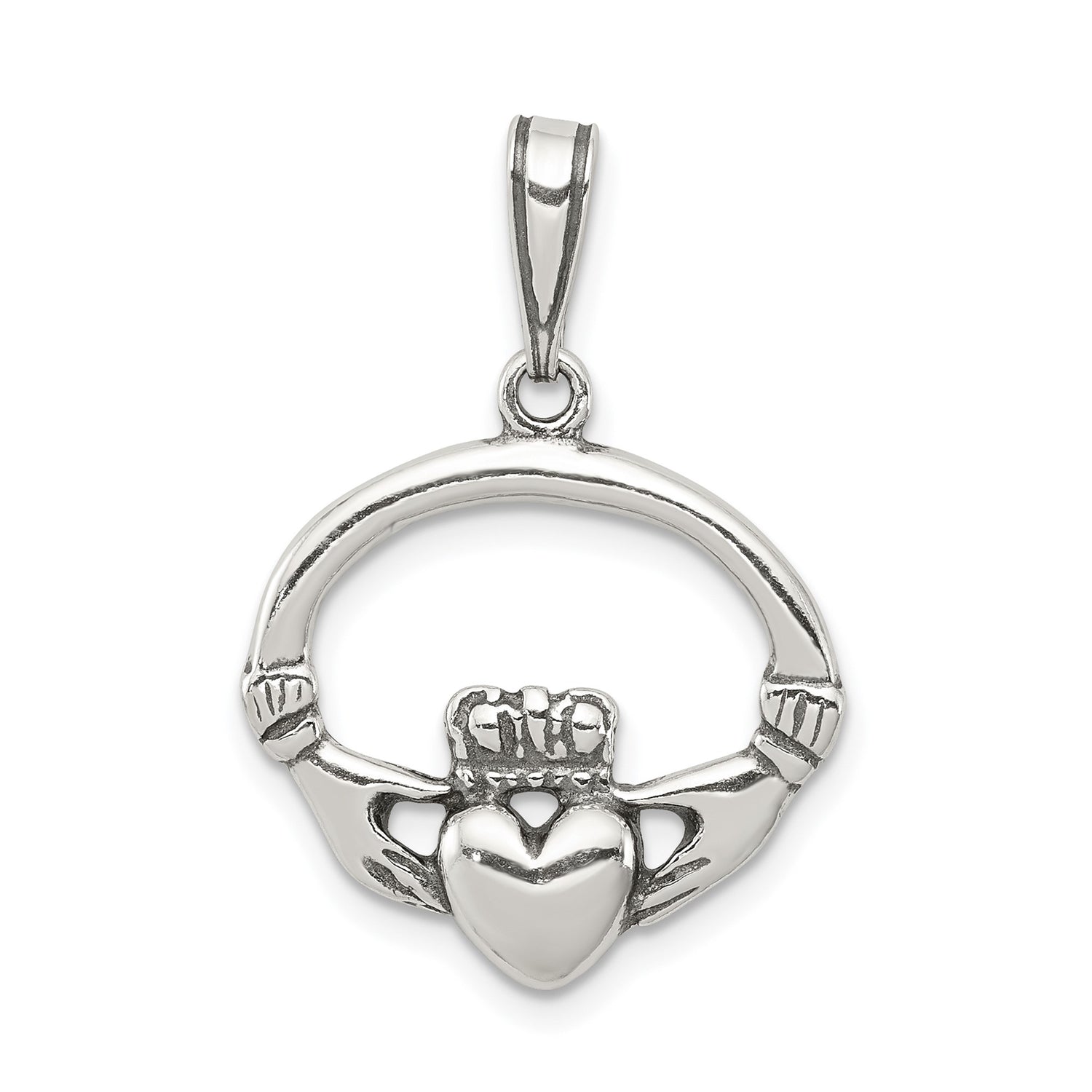 Sterling Silver Claddagh Pendant with Heart, Crown and Hands, Celtic Love and Friendship Symbol