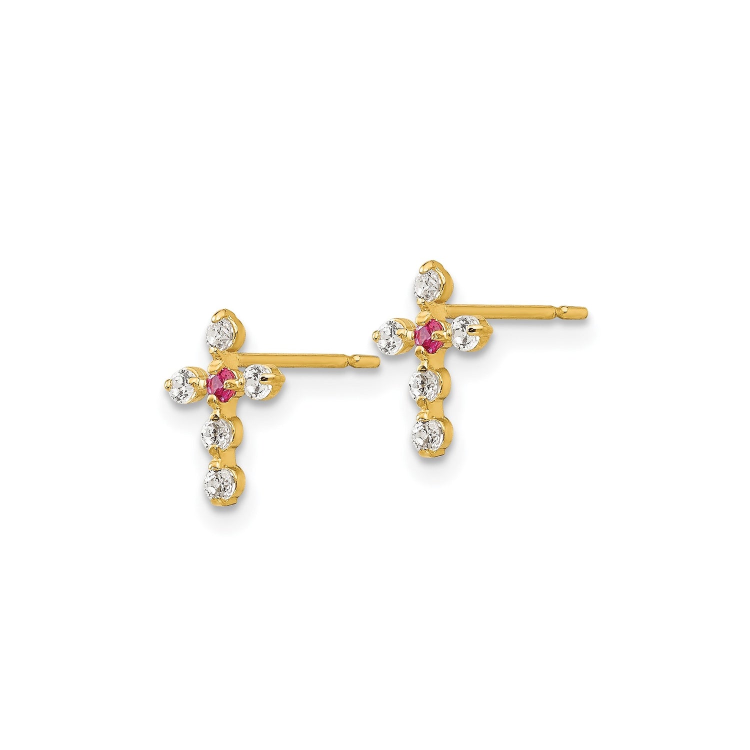14k Yellow Gold Cross Pendant with Cubic Zirconia, Religious Charm for Men and Women
