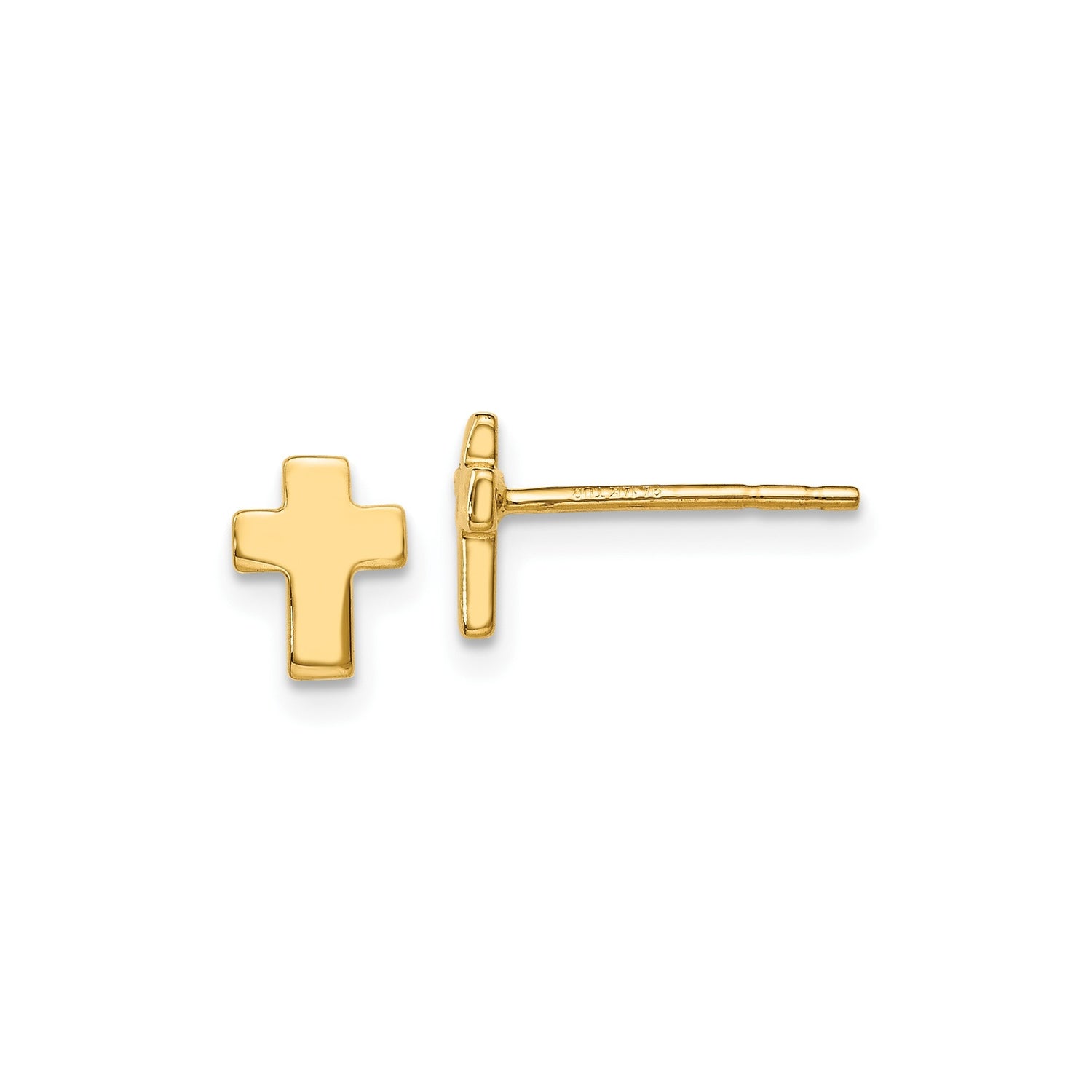 14k Yellow Gold Cross Stud Earrings, Dainty Modern Religious Jewelry for Men and Women
