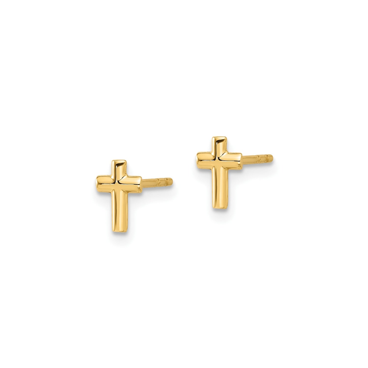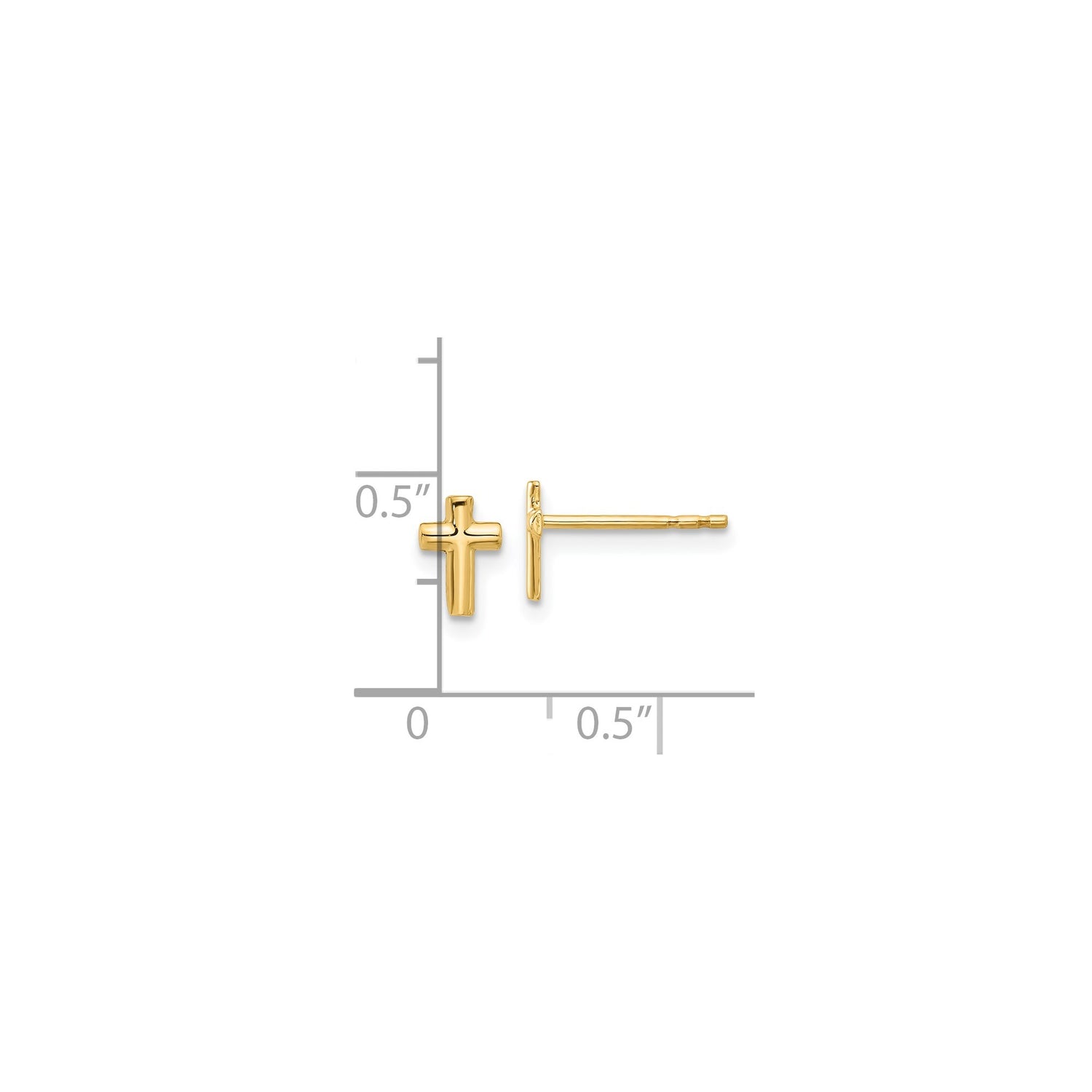14k Yellow Gold Cross Stud Earrings, Polished Christian Jewelry, Minimalist Faith Symbol