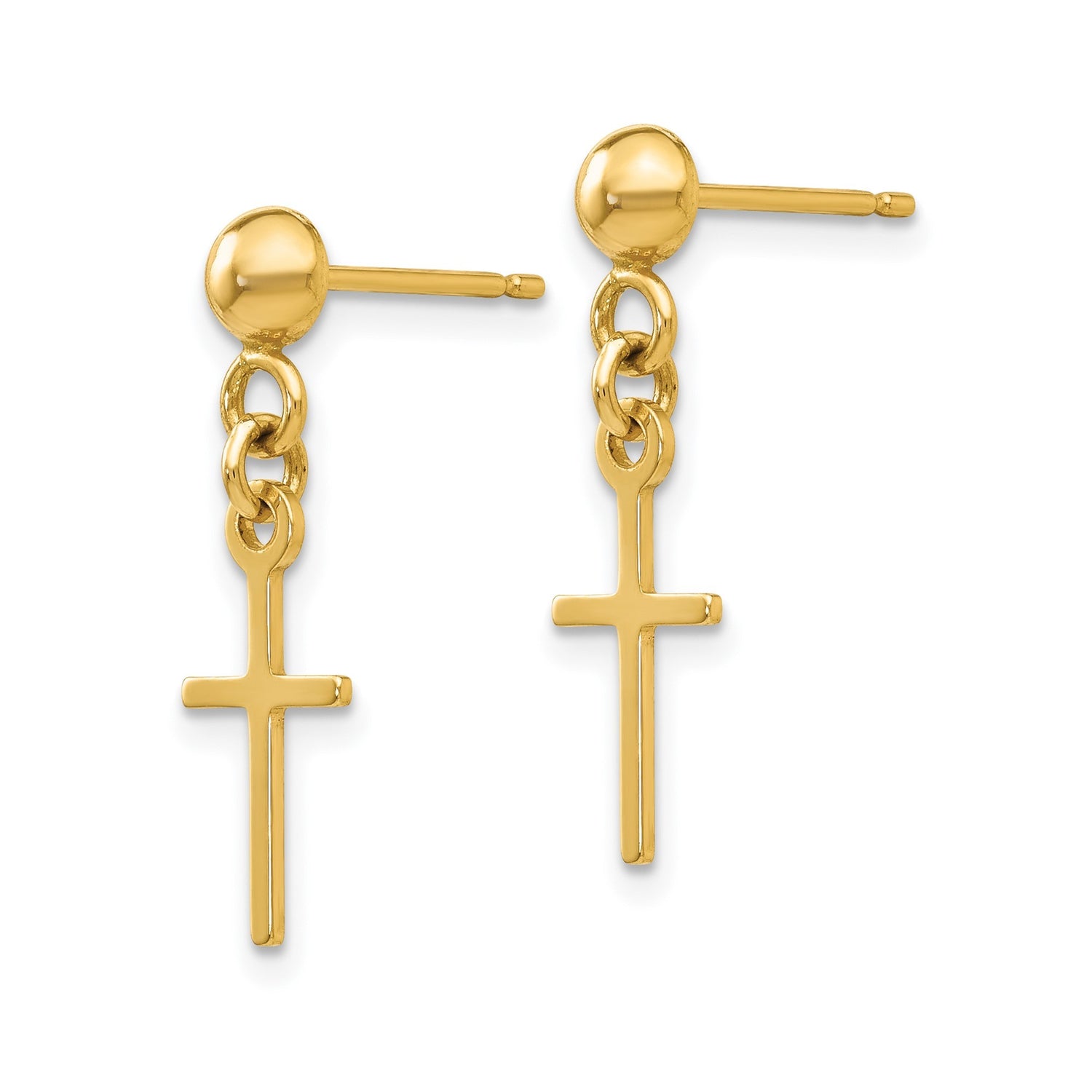 14k Yellow Gold Dangle Cross Stud Earrings, Simple Christian Symbol, Faith-Inspired Jewelry