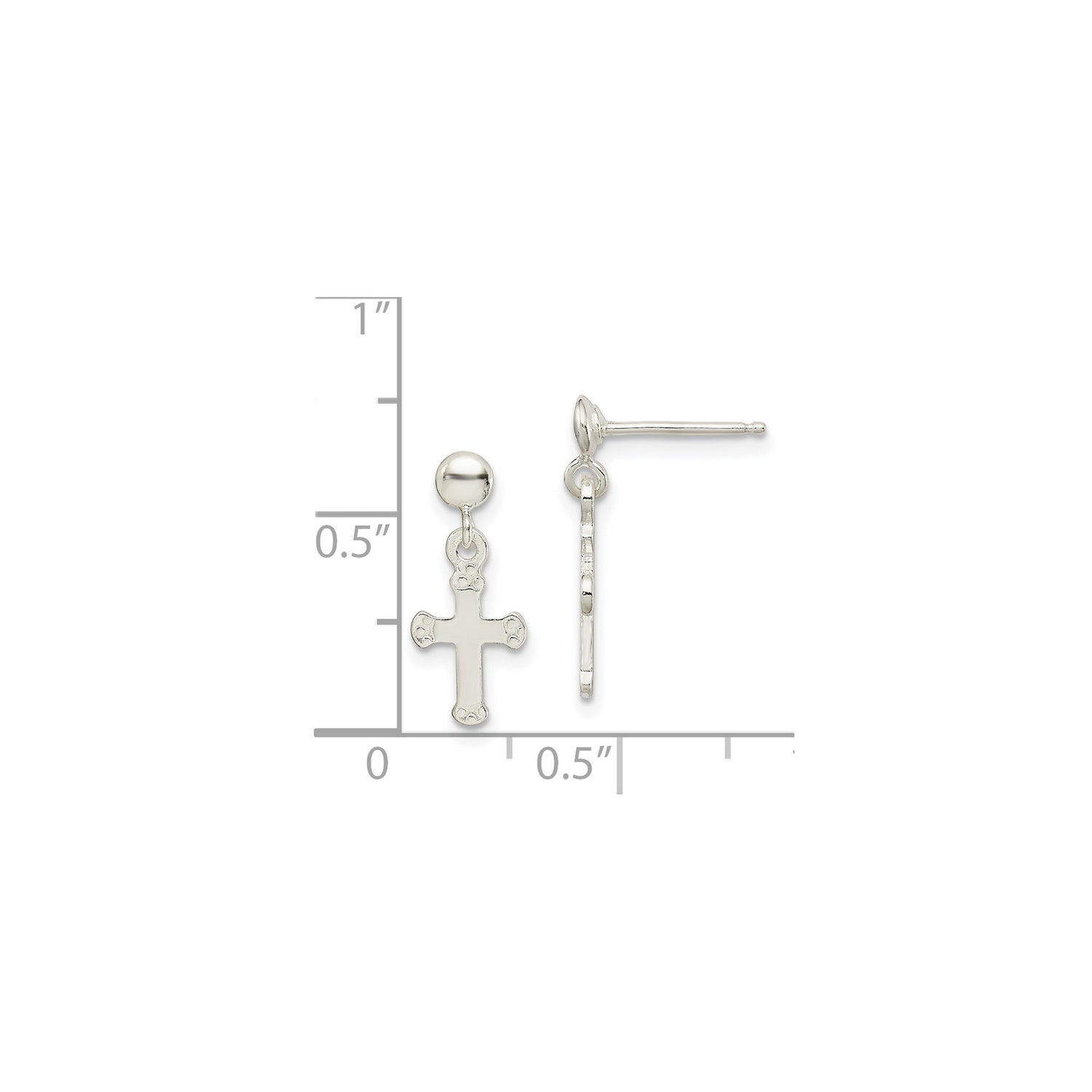 Sterling Silver Budded Cross Dangle Earrings, Polished Finish, Spiritual Minimalist Design