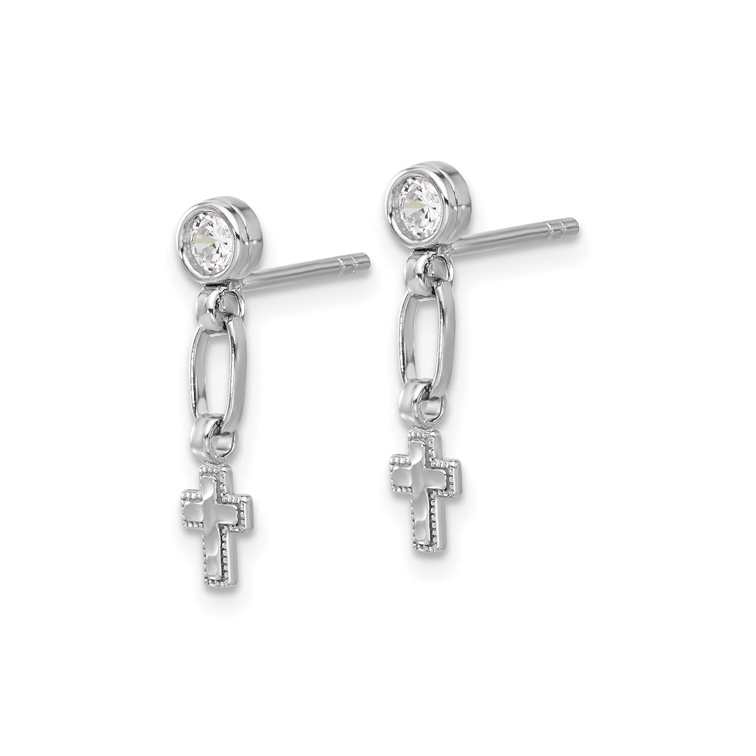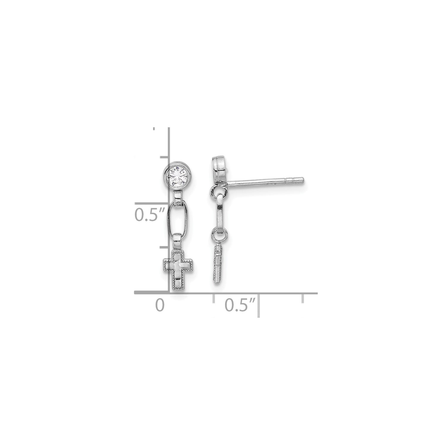 These cross dangle earrings are accented with precision-set CZ stones in a classic bezel setting, enhancing their presence without overwhelming their delicate cross earring silhouette. Whether you're styling your look with minimalist fashion cross touches or adding a spiritual style accessory to layered ensembles, these earrings offer flexible styling that complements everything from casual apparel to classic church jewelry.
