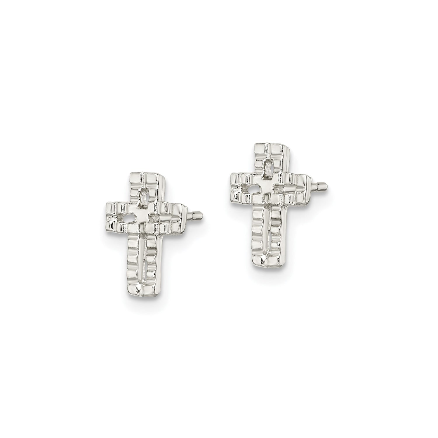 Sterling Silver Latin Cross Stud Earrings with Textured Rustic Finish