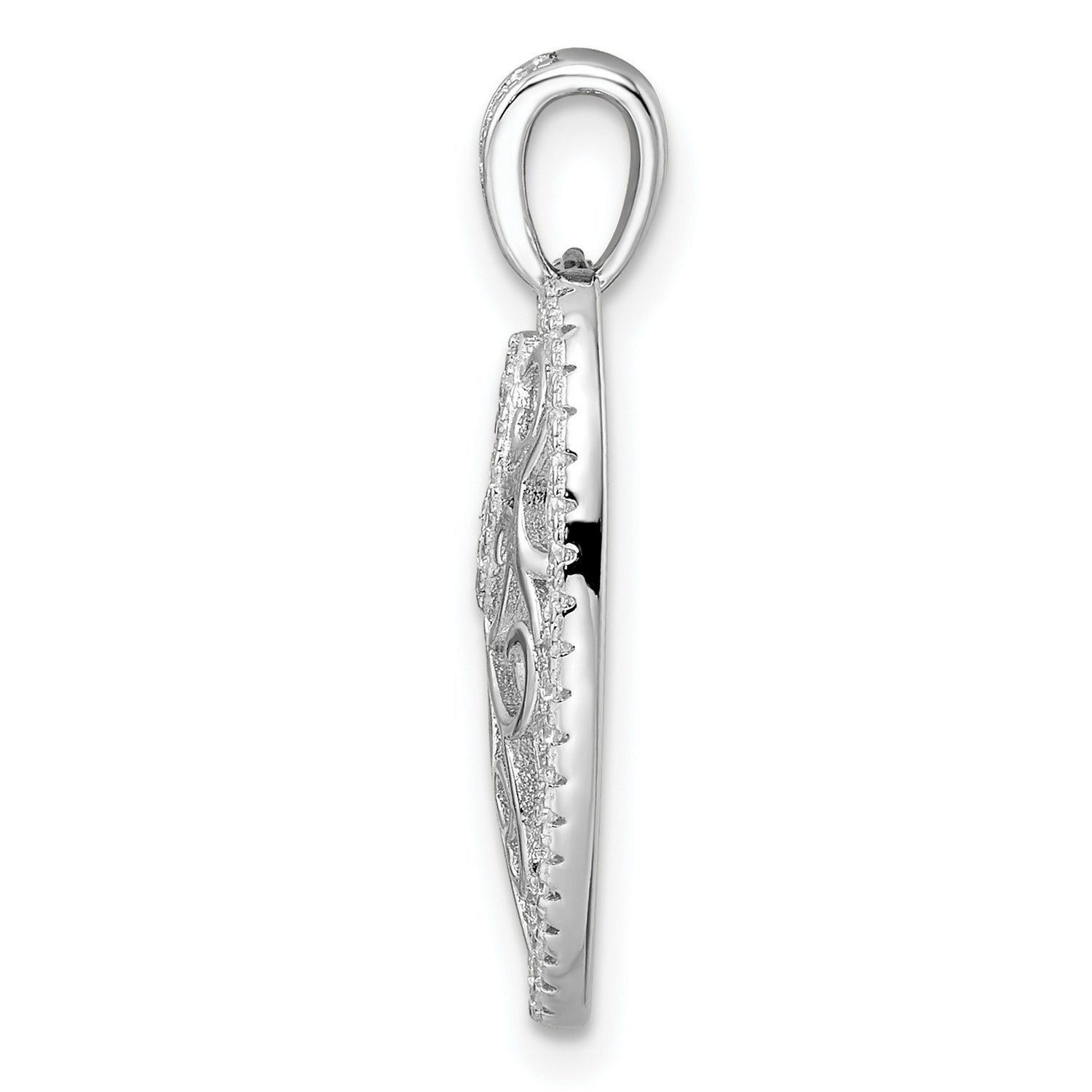 Sterling Silver Heart Pendant with Openwork Filigree, Floral Scroll Design, Cubic Zirconia Accents